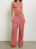 The 2-piece set includes a matching top and pants, allowing you to wear them together for a coordinated look or pair them separately with other wardrobe staples for endless styling options.