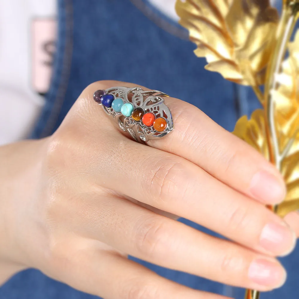 This beautiful 7 Chakra Ring is made up of natural stones and is an explosion of energy on your finger.