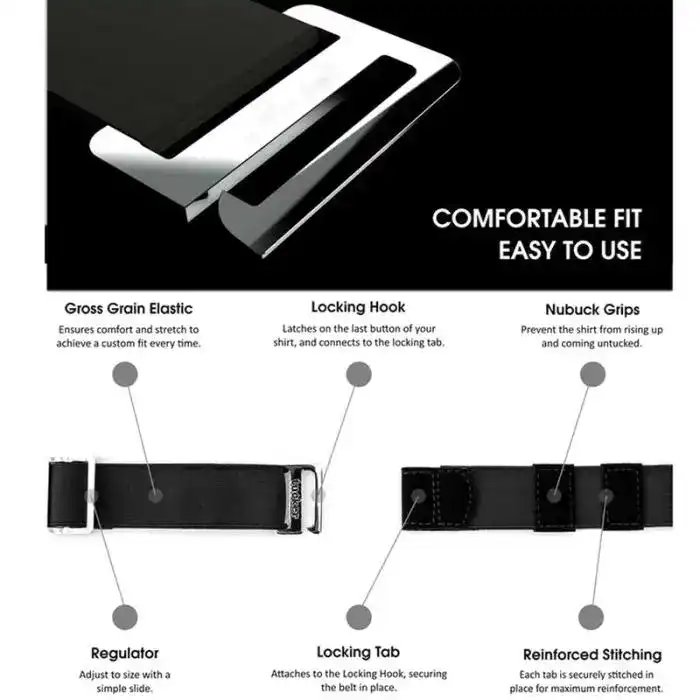 6. When slipped on, the belt will secure your shirt in place and always keep it tucked.