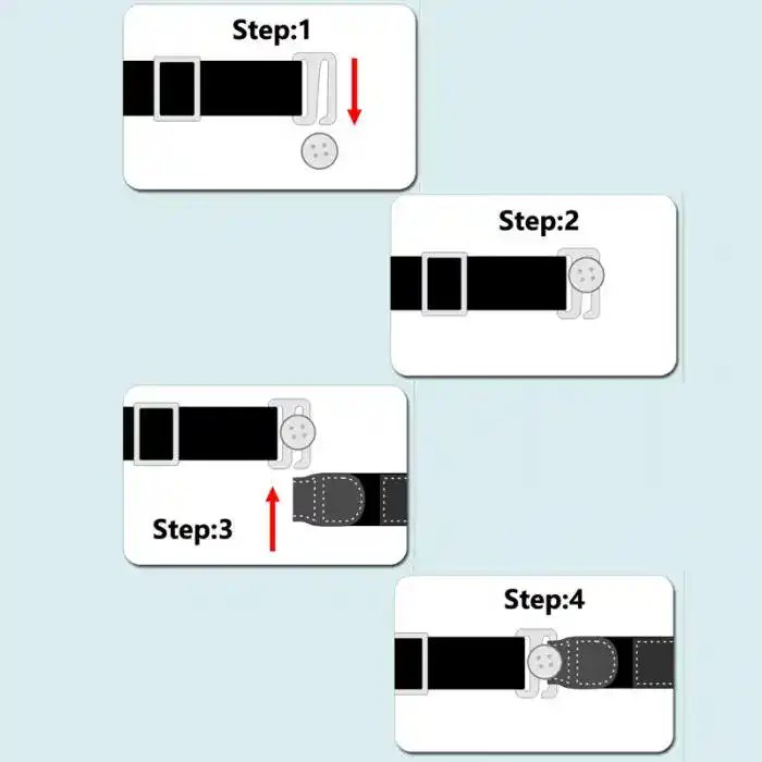 The Adjustable Shirt Holder is the easiest and most effective way to keep your shirt tucked in tight against your body. It’s a unique and easy to use the device that uses elastic tension for a noticeably improved image. Not only is it comfortable and concealed, but it also gives your body a slimmer appearance. Rubber grips and a button slot guarantee your shirt to stay tucked, keeping it low and close to the body. No more embarrassing looks!