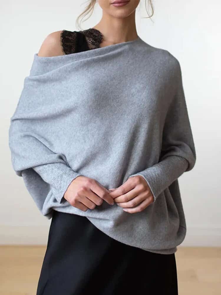 The solid colour and plain style for this Asymmetric Draped Jumper is simple but not boring.You can wear this signature style on the shoulder as an elegant cowl neck or off-the-shoulder, meet your different dressing needs.