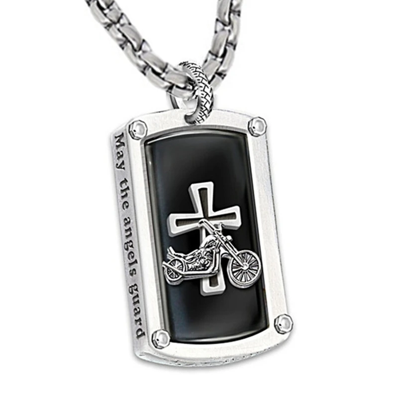 Every biker thrives on the thrill of the open road and the freedom a motorcycle represents. Now, we’re excited to introduce you to a unique custom jewelry design for those with that ride-hard, live-free spirit, the Biker blessing necklace. This biker’s necklace includes raised corner rivets on the front and back and a unique bail in the shape of a motorcycle tire, which holds a 60cm stainless steel custom “bike chain”. Superbly handcrafted in stainless steel, this necklace features a sculpted custom bike and cross icon against a jet black ion-plated background. Adding to its special meaning, this keepsake is engraved on the back with a cross and biker’s motto “RIDE HARD LIVE FREE,” while etched on the sides are words from the powerful “Biker’s Blessing” poem. Order now!
