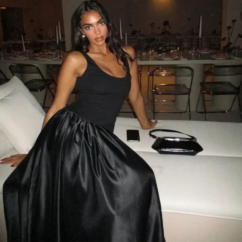 The allure of this dress lies in its minimalist yet captivating design. The sleek silhouette and understated charm make it a canvas for personal expression. Dress it up with statement jewelry and heels for a sophisticated evening ensemble or opt for a more casual look by pairing it with a denim jacket and sneakers for a relaxed yet chic vibe.