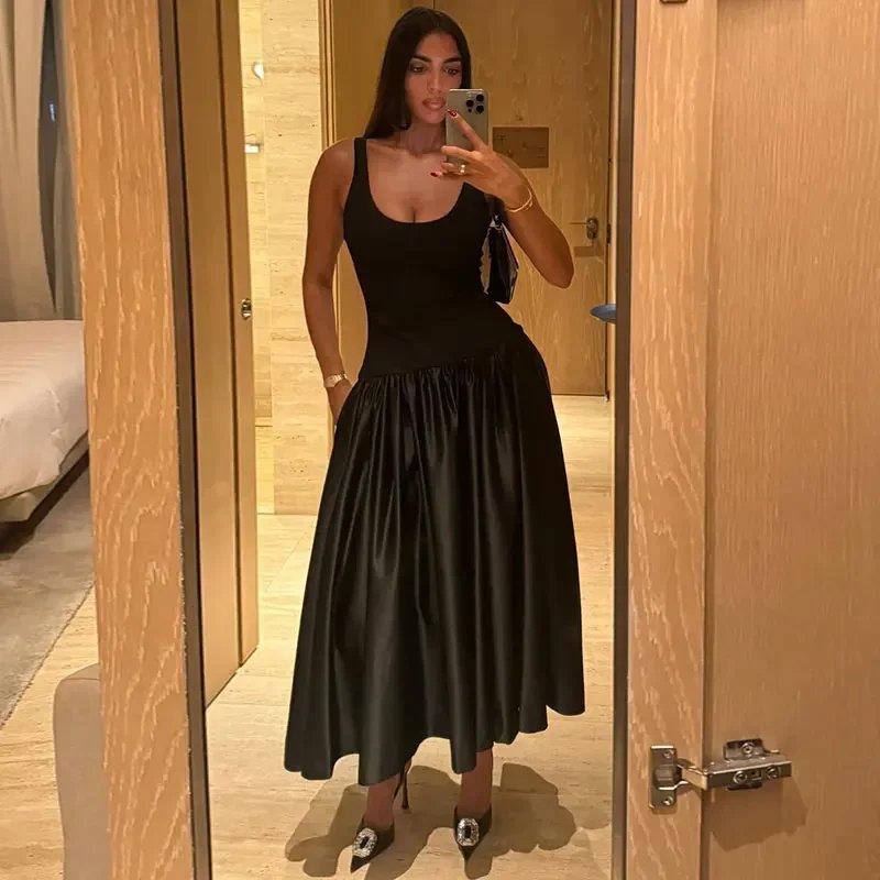Crafted from premium, high-quality fabric, our Black Sleeveless Dress boasts a luxurious feel against the skin. The blend of fine materials ensures a flattering and comfortable fit, accentuating your silhouette while providing ease of movement for all-day wear.