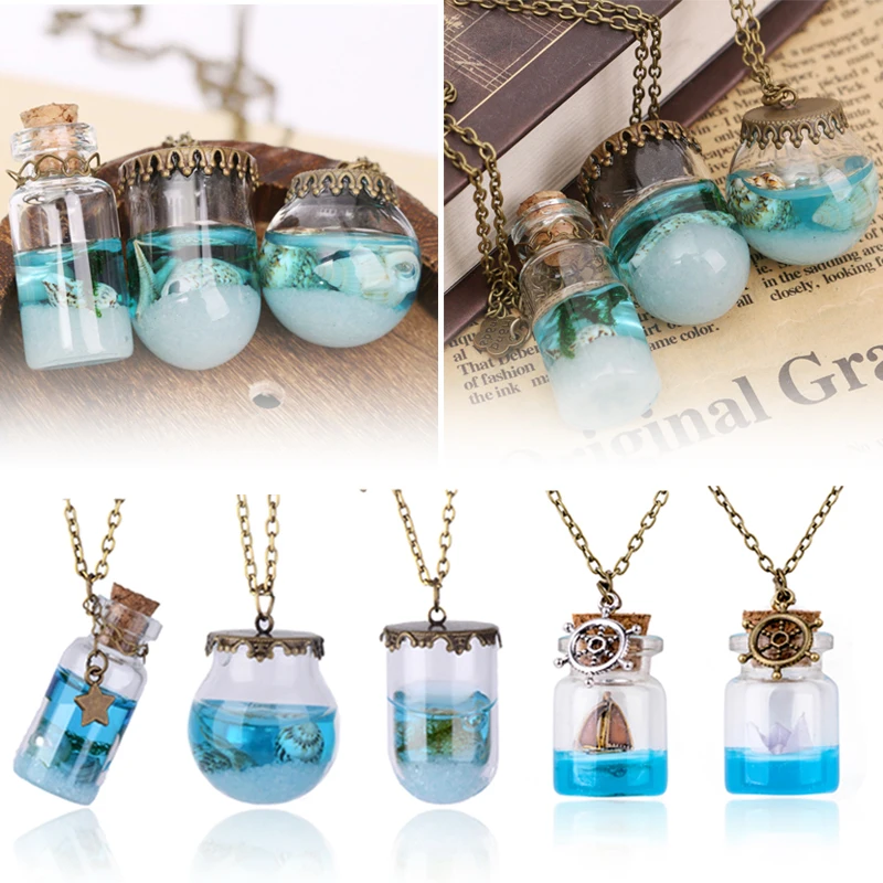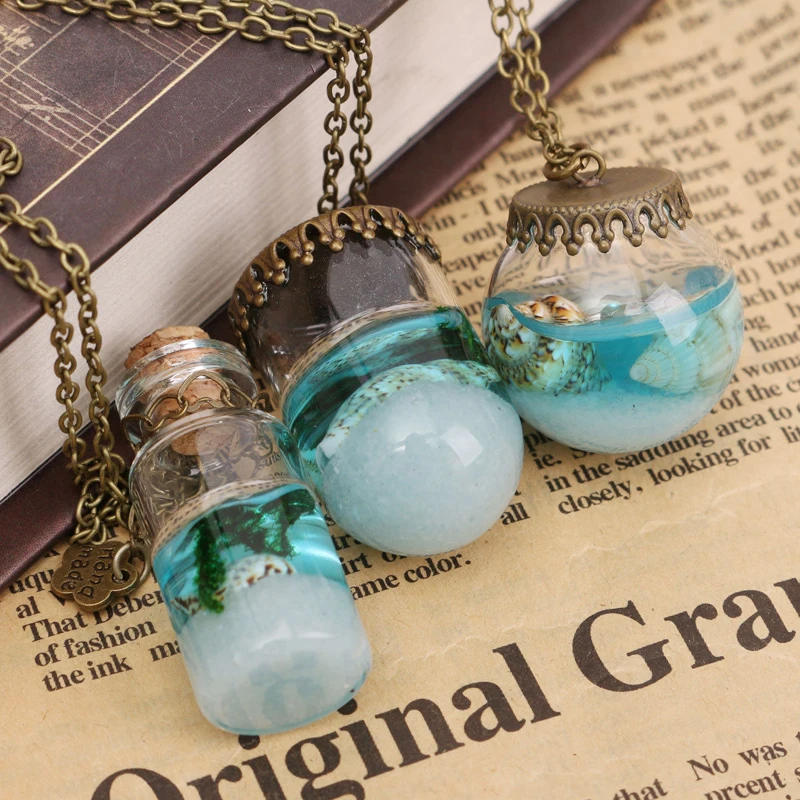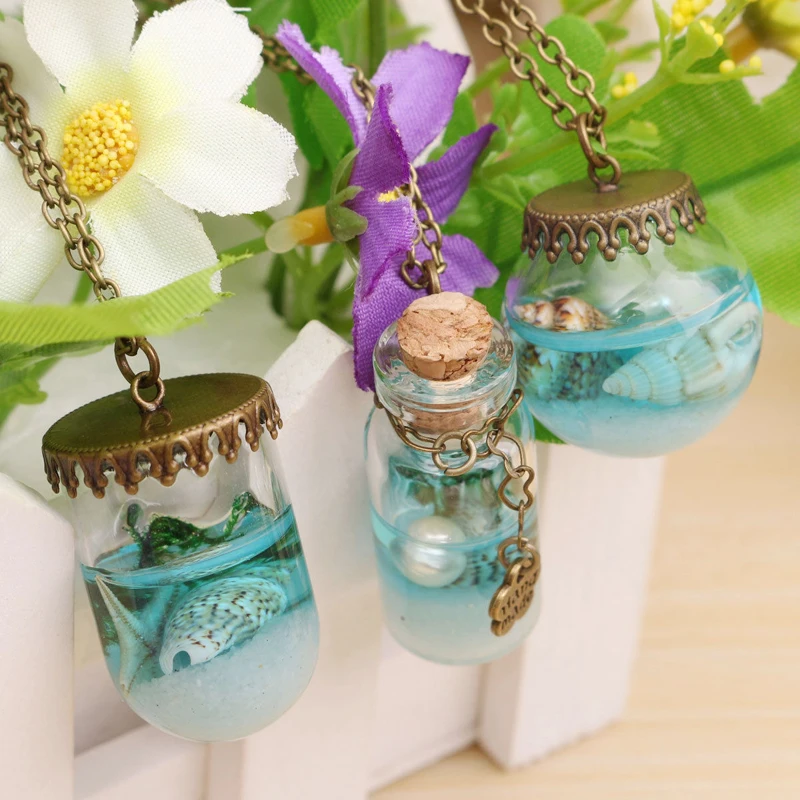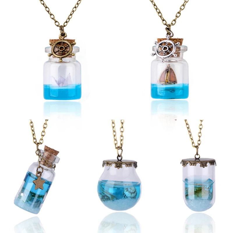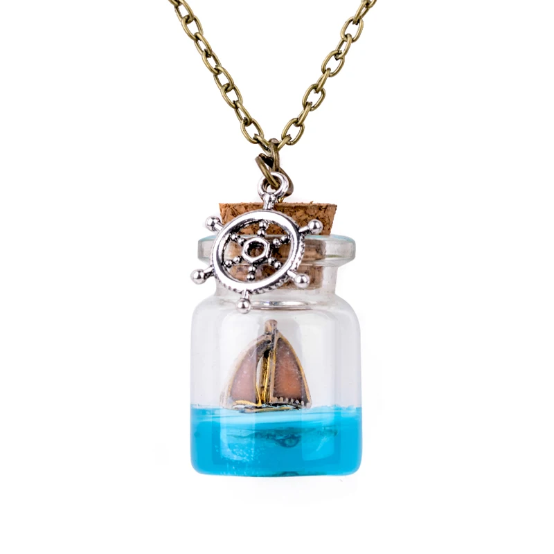 Ocean series drift bottle glass necklace, let you feel the breath of the sea