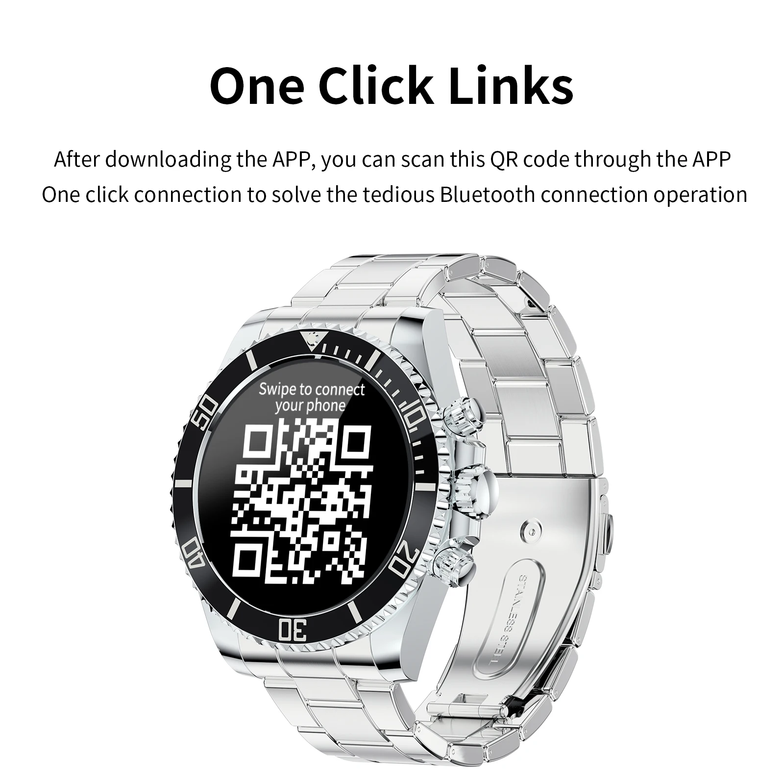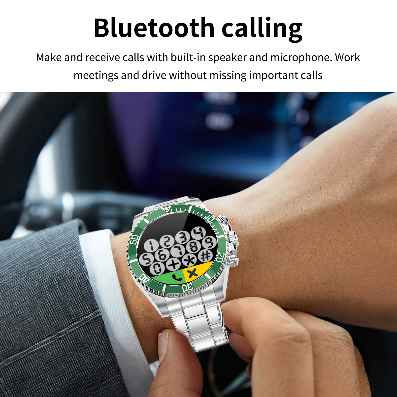 Are you having trouble managing your own time? Don’t worry, our Men’s Bluetooth watch will help you easily organize your time in the most efficient way. It has a 1.3-inch full touch screen, stainless steel precise craft, brings a clear and delicate display, stainless steel band, comfortable to wear. After connecting the phone via Bluetooth, you can receive and make calls through the bracelet during sports, driving and other occasions, free your hands, more convenient. Message vibrate reminder, instant display notification. Moreover, it has built-in multiple exercise modes, when you exercise, turn on the corresponding exercise mode, calculate the calorie consumption, and let you make your own workout plan for your health goals. Multiple dials can be switched, it also supports custom dials. Buy it now!