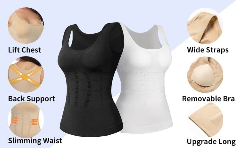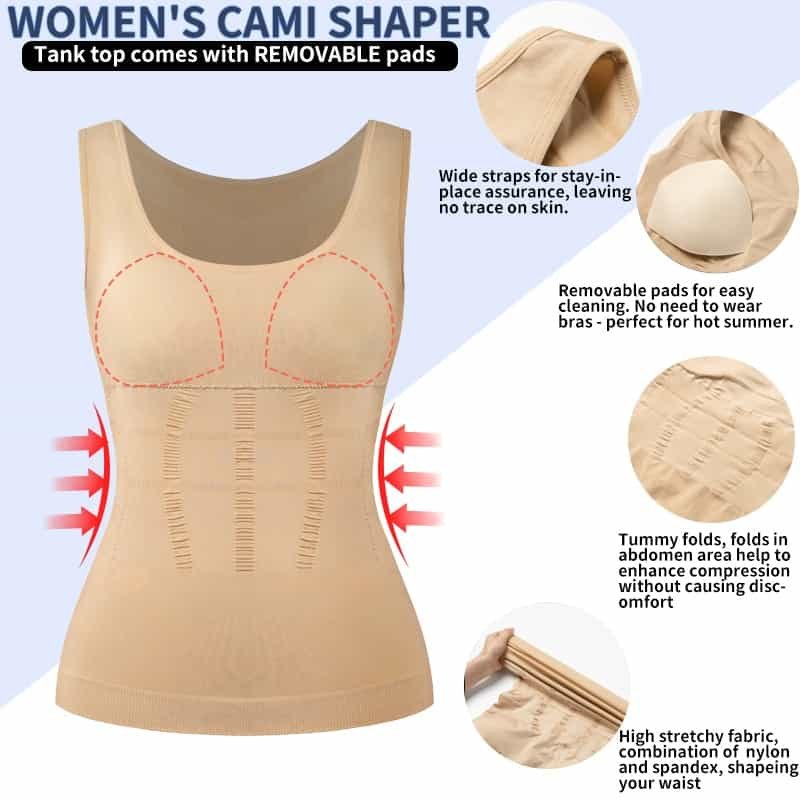 GREAT SUPPORT TANK: Figure flattering fit with targeted light tummy shaping, smoother look in my clothes. Flexibility built in shelf bra, soft sleek luxurious fabric, smoothing and long torso control for all-day comfort and security. If you don’t want the pads, you either remove up to wear your own bra.