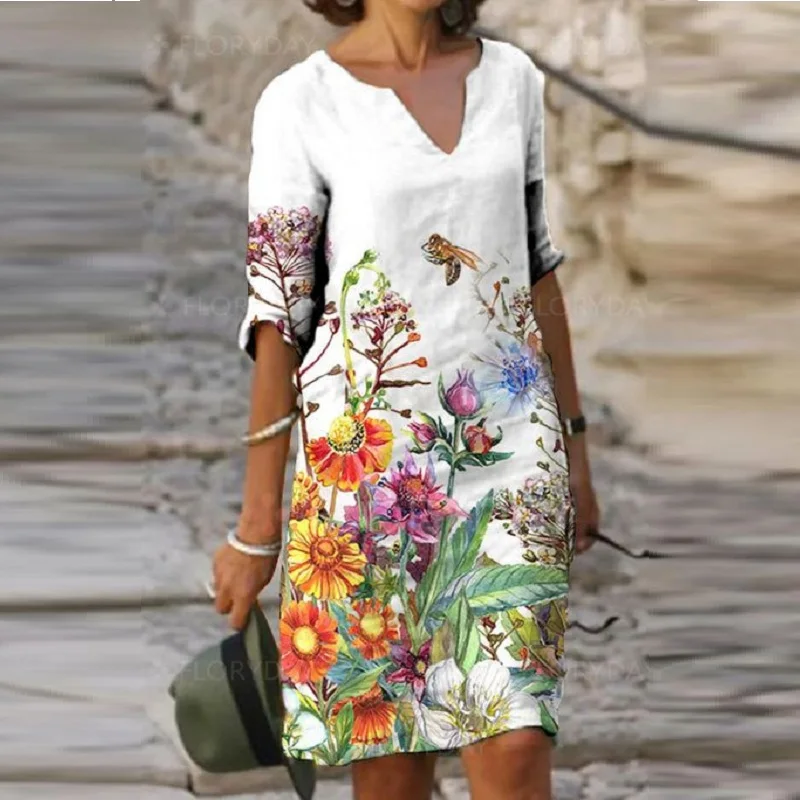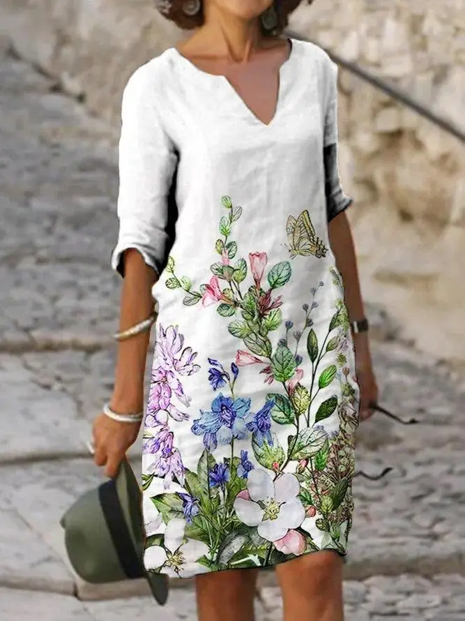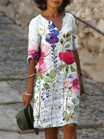 Are you looking for a casual dress for this summer? Let’s try our Ladies’ casual V neck dress, it will make you stand out on the street! The special emphasis of this dress was placed on a comfortable fit. It skillfully emphasizes your feminine side while concealing problem areas. The flattering dress is knee-length, straight fit from bust to sweep with short sleeves, bateau neckline, and single-button closure. This classic dress is comfortable yet versatile enough for any occasion, just add a beautiful statement necklace and a pair of sandals or pumps. Feel fun a flirty in this casual printed dress! Buy now!