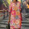 Are you looking for a casual dress for this summer? Let’s try our Ladies’ casual V neck dress, it will make you stand out on the street! The special emphasis of this dress was placed on a comfortable fit. It skillfully emphasizes your feminine side while concealing problem areas. The flattering dress is knee-length, straight fit from bust to sweep with short sleeves, bateau neckline, and single-button closure. This classic dress is comfortable yet versatile enough for any occasion, just add a beautiful statement necklace and a pair of sandals or pumps. Feel fun a flirty in this casual printed dress! Buy now!