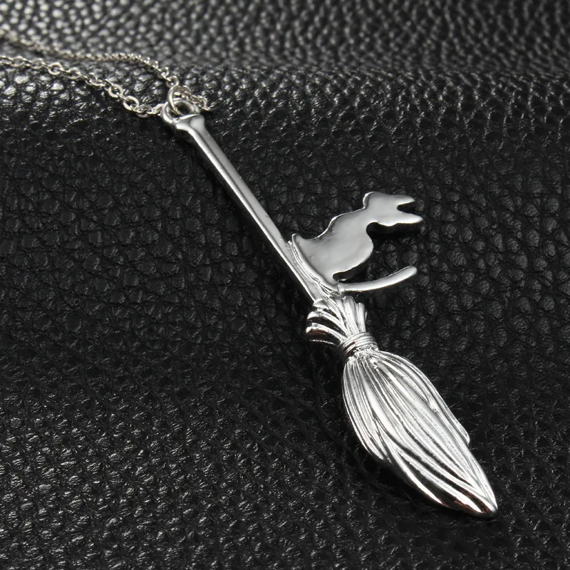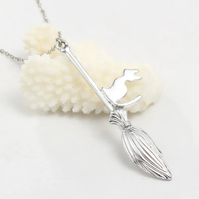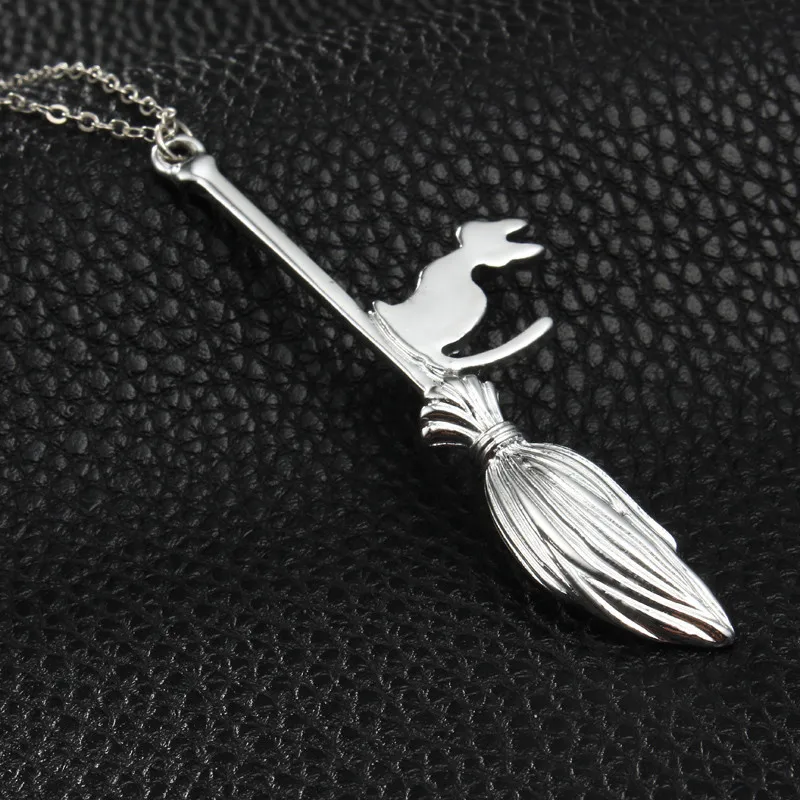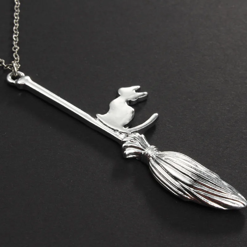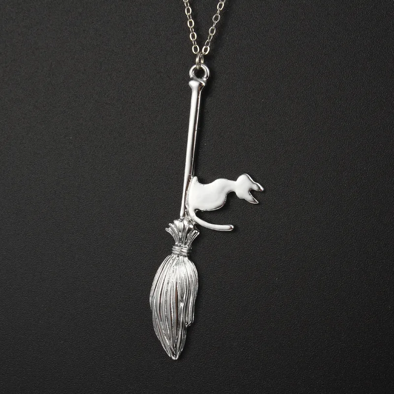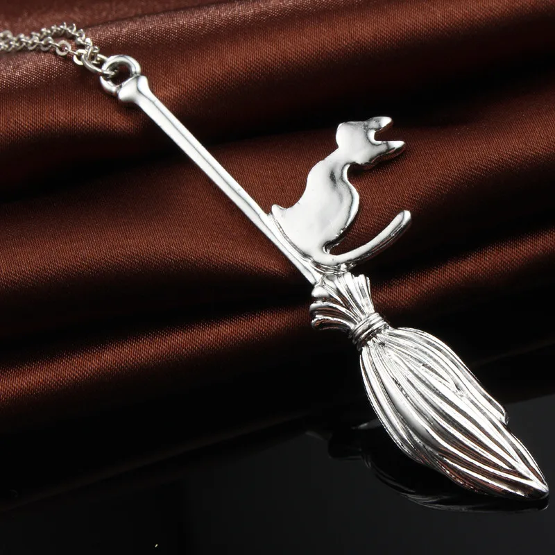 Cat With Magic Broom Pendant
