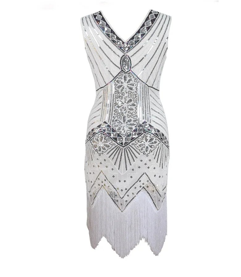 DESIGN: 1920s Dazzling Art Deco Wedding Gowns Embellished Dress with Tassel Hem. Fashion 1920s Fringed Sequin Handmade pattern.