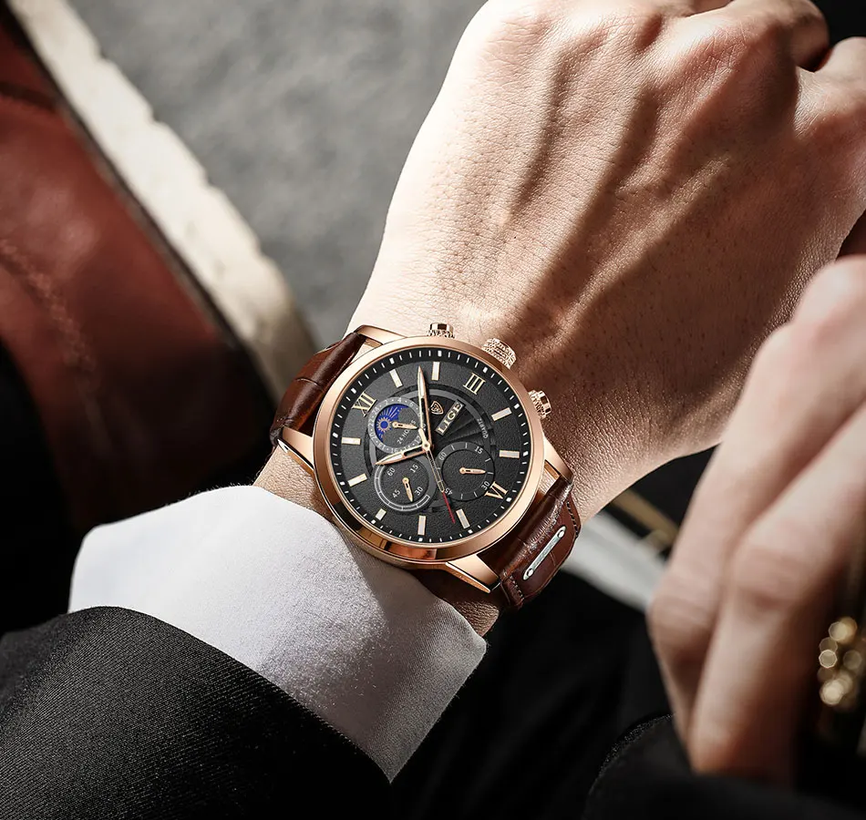 Accessories are important items that create a man’s elegance and prominence, especially the watch. This Classic sports watch will make a great gift for you. The product is made of stainless steel case and leather band, the leather strap is soft and durable, bringing you a comfortable wearing experience. It uses high-quality and ultra-precise automatic movement provides various indications of the conventional calendar such as the date, the week, and the month. In addition, it is water-resistant to 30m, suitable for daily use, can tolerate sweat, accidental rain or water splash. This watch is exquisite in workmanship, and the stylish and eye-catching round dial shows its personality. Get right now!