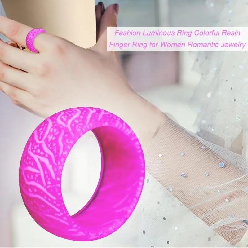 Our Colorful Glowing Rings are made with high-quality resin and photo luminescent powder. After each ring is set they are high polished to a beautiful gloss finish.
