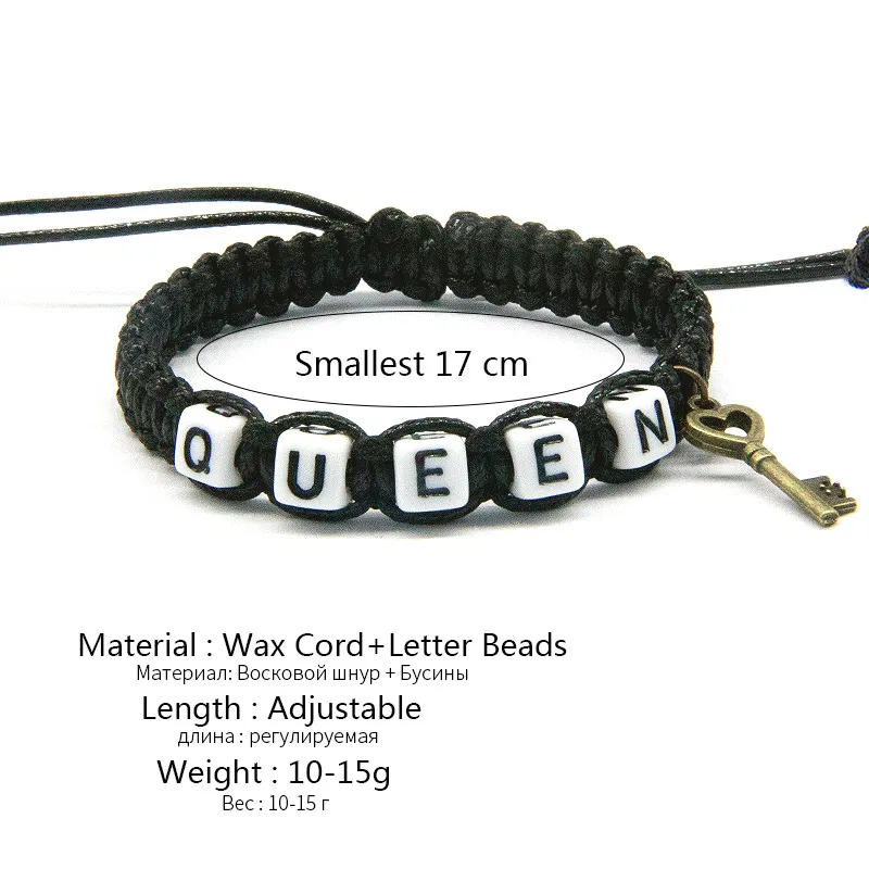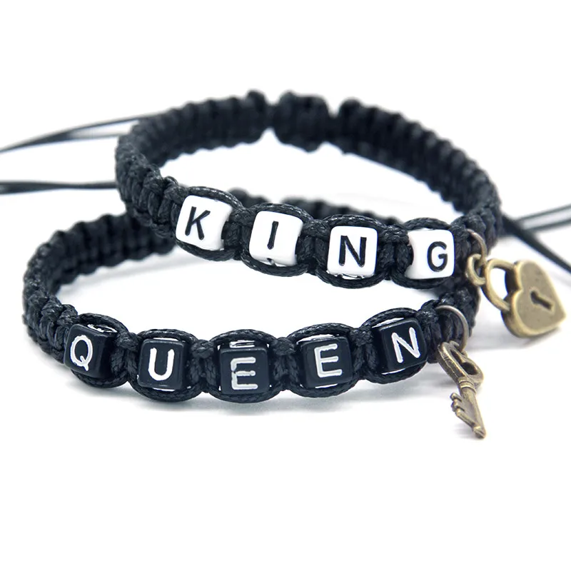 This two-piece couple lock charm rope bracelet set is perfect for you and your significant other. The set comes with one rope style bracelet that reads, “KING” and another that reads, “QUEEN.” The bracelets are perfect for showing off your love for one another.