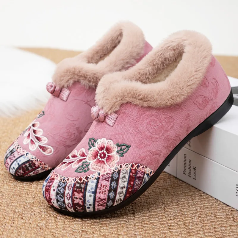 Whether you’re sipping cocoa by the fire or padding around the house, the Cozy Embroidered Winter Slippers are your go-to for warmth, style, and serenity.