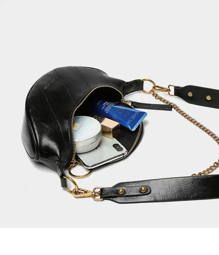 Let’s make your friends around you jealous because of this fashionable crossbody sling bag. Firstly, it is made of one of the best grain PU leathers, is high quality, and keeps a long service life for your bag. Besides, with zippers around and textured snap buttons, the bag will become extremely trendy. Moreover, about the hardware and lining, it’s light gold hardware and also leather lining; you can rest assured about its quality. Most importantly, it’s suitable for any age, from teenage to adult female and any occasion. So convenient, what are you waiting for? Shopping now!