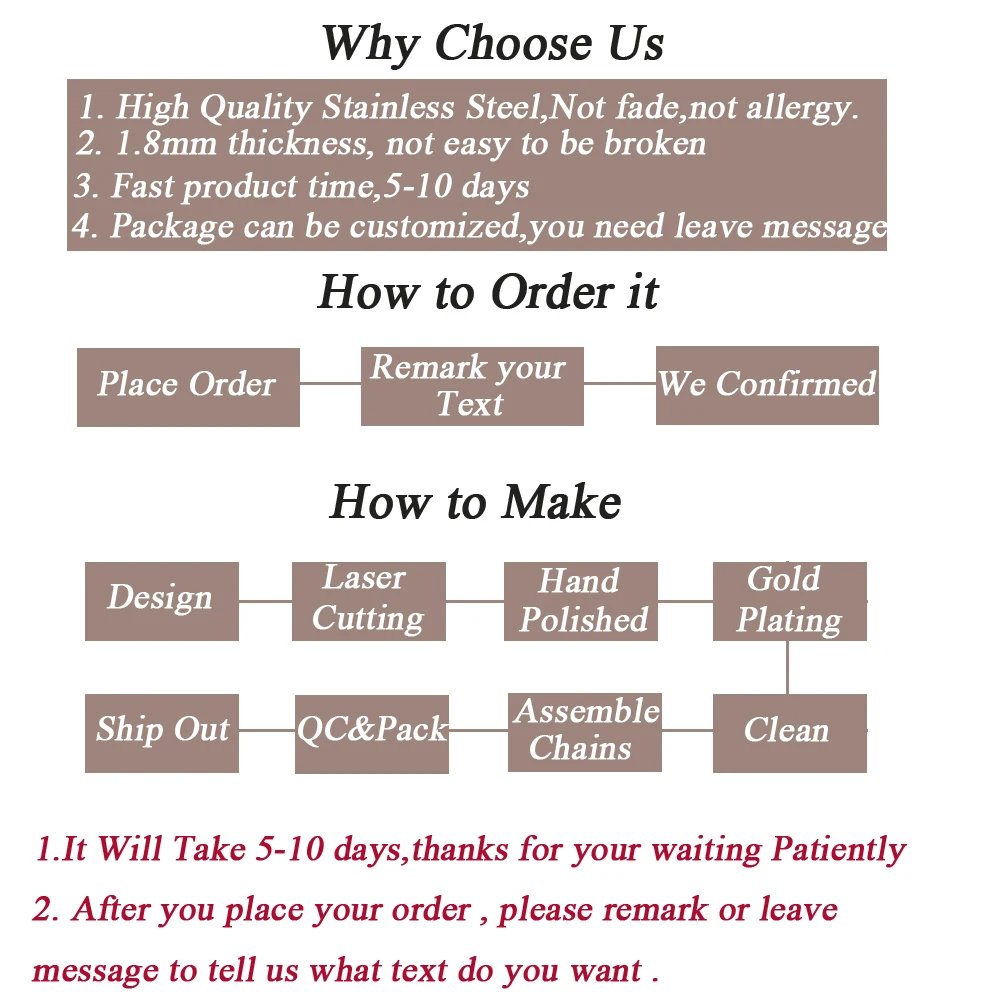 This product is customized jewelry and the production cycle needs 2-5 working days. We will make the products according to the order time. Therefore, in order for you to receive the products faster, it is recommended that you place an order as soon as possible.