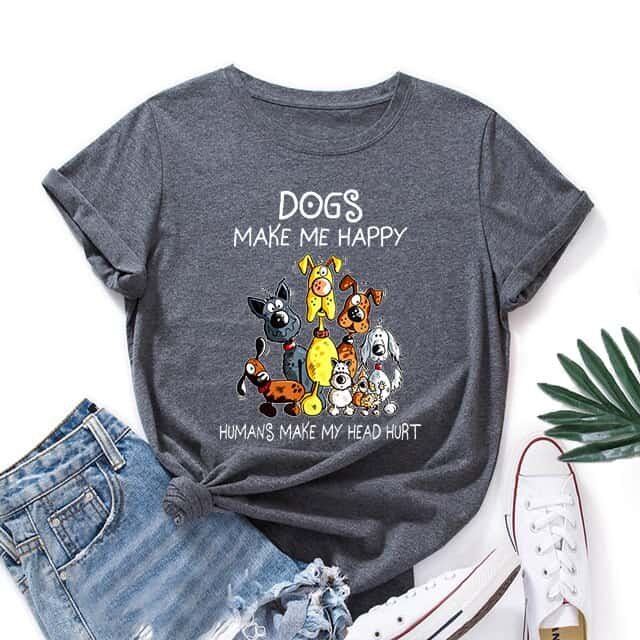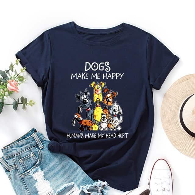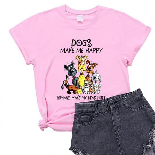 Do you love dogs ? If yes, don’t skip our Dogs make me happy t shirt! Anyone who loves their 4 legged friend, dog lovers and pet owners and an introvert or someone who hates people will love this awesome design of “dogs makes me happy, humans make my head hurt.” Dog moms, dog dads, even fur parents will be happy for this. This funny graphic of different breed of dogs makes a perfect birthday or Christmas graphic to your friends who are dog lovers. It is made of 100% cotton, comfortable enough to get you through the day. Perfect for all dog lovers, this design has been hand printed to give the print great depth and texture! Buy now!