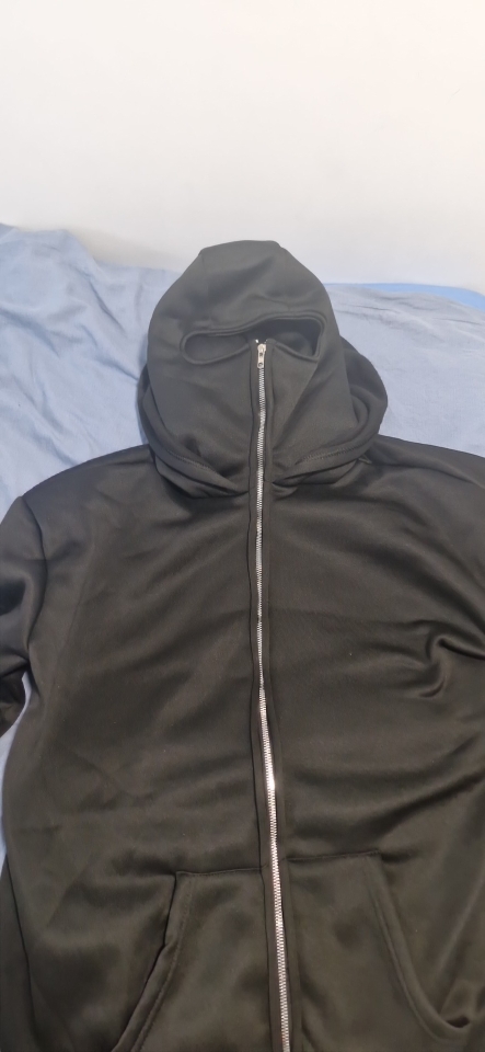 This isn’t your average hoodie. Featuring a built-in eye mask and dual-layer hood, it fuses streetwear flair with functional protection. Complete with a full front zipper, long sleeves, and ribbed cuffs and hem, it’s the perfect blend of style and utility.