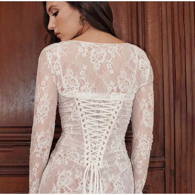 The dress is crafted from high-quality materials that ensure both durability and comfort, so you can dance the night away without sacrificing elegance. With its timeless lace detailing, customizable fit, and alluring shawl accessory, this maxi dress is a celebration of femininity and refined style. Elevate your wardrobe with the Shawl Drawstring Lace Maxi Dress and embrace the allure of timeless fashion.