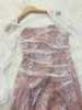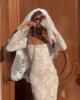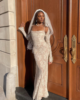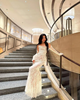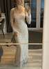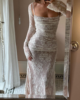 Crafted with meticulous attention to detail, the dress features a delicate lace overlay that exudes grace and femininity. The intricate floral patterns cascade gracefully, creating an ethereal aesthetic that captivates with every movement. The maxi length adds a touch of drama, ensuring you make a statement wherever the evening takes you.