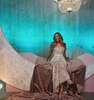 The drawstring waist of the dress not only enhances your silhouette but also provides a customizable fit, allowing you to tailor the dress to your unique shape. The result is a flattering and comfortable ensemble that celebrates your individual style. The shawl, a complementing accessory, adds an extra layer of sophistication, draping gracefully over the shoulders for an effortlessly chic look.