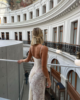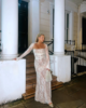 Crafted with meticulous attention to detail, the dress features a delicate lace overlay that exudes grace and femininity. The intricate floral patterns cascade gracefully, creating an ethereal aesthetic that captivates with every movement. The maxi length adds a touch of drama, ensuring you make a statement wherever the evening takes you.