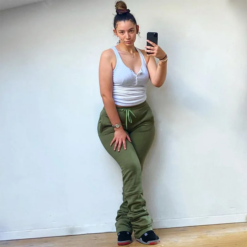 Are you looking for pants that are comfortable to wear at home that you can also wear out? Do not ignore our Drawstring stacked pants. The item is made of polyester that is of high elasticity and stretchy, breathable and skin-friendly, comfy to wear. Elastic waistband and adjustable drawstring for a fit, can ensure the fit and offer a comfortable wear experience, drawstring high waist to shape your curve better and bright solid color makes you shining in the crowd. This casual warm sweat pant is suitable for various occasions such as travel, sports, holiday, fitness, shopping gathering, going out daily, wear holiday Christmas, party family, etc. Buy it now!