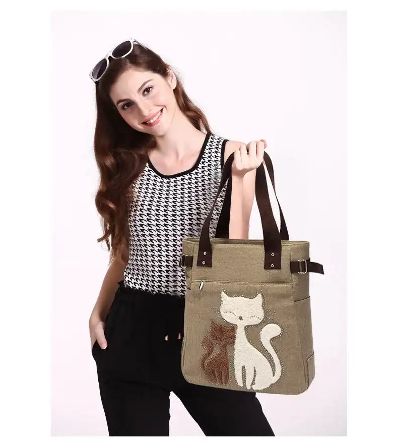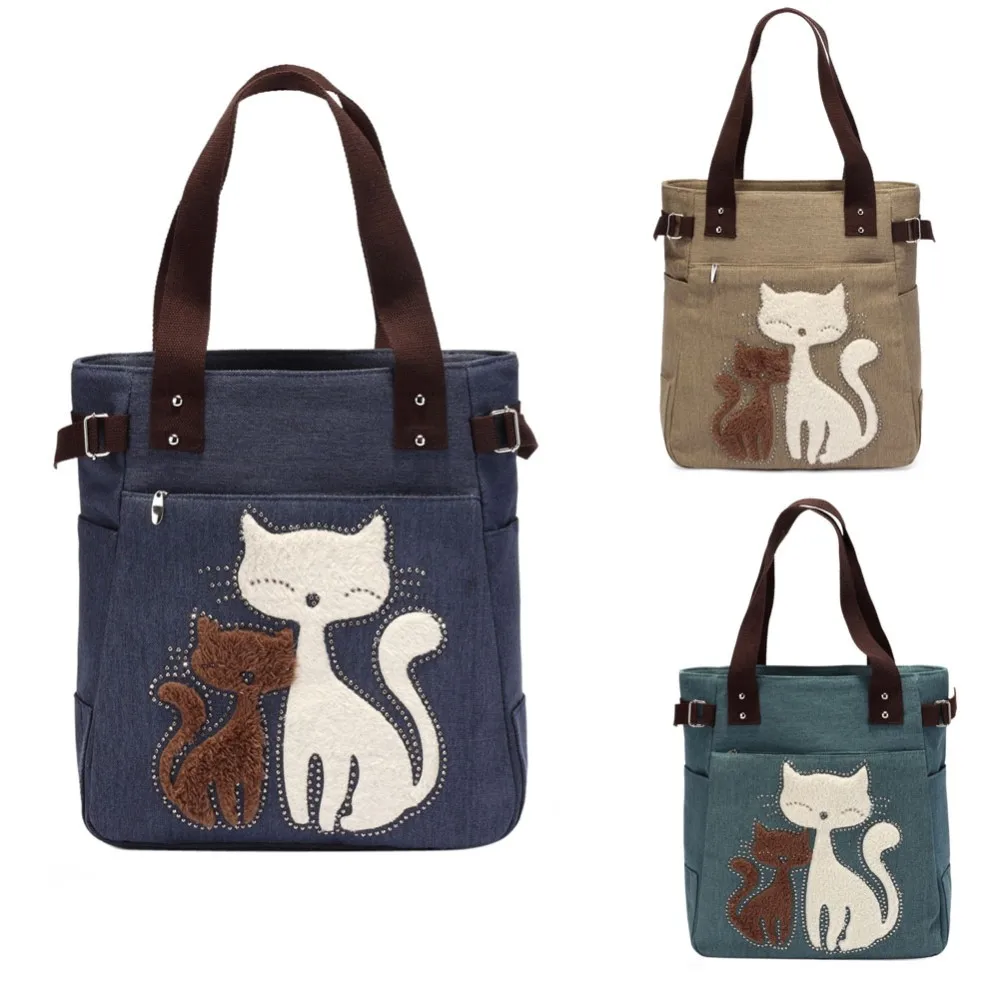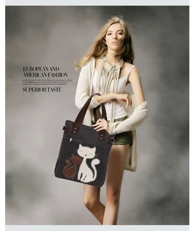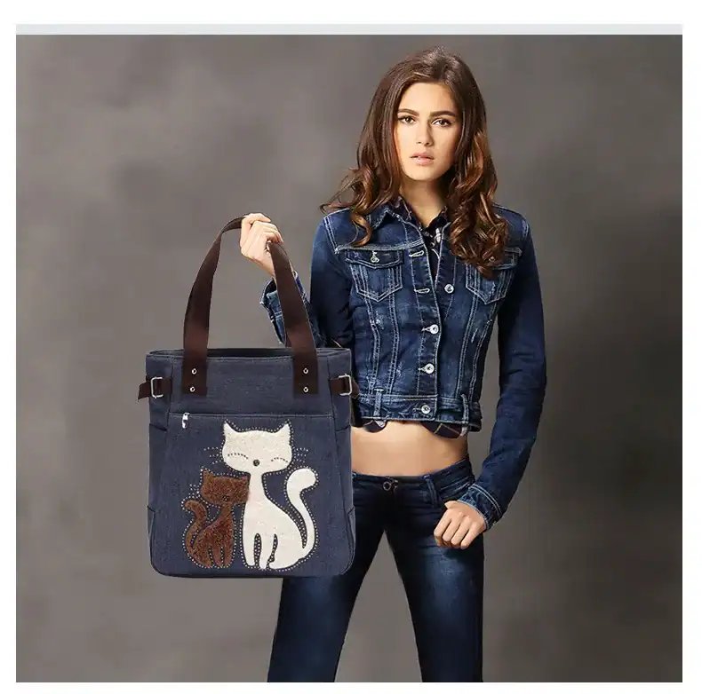 Women’s canvas handbag with cute cat fashion ladies small bags