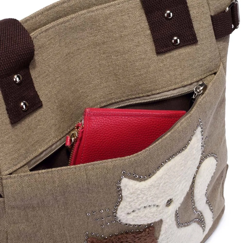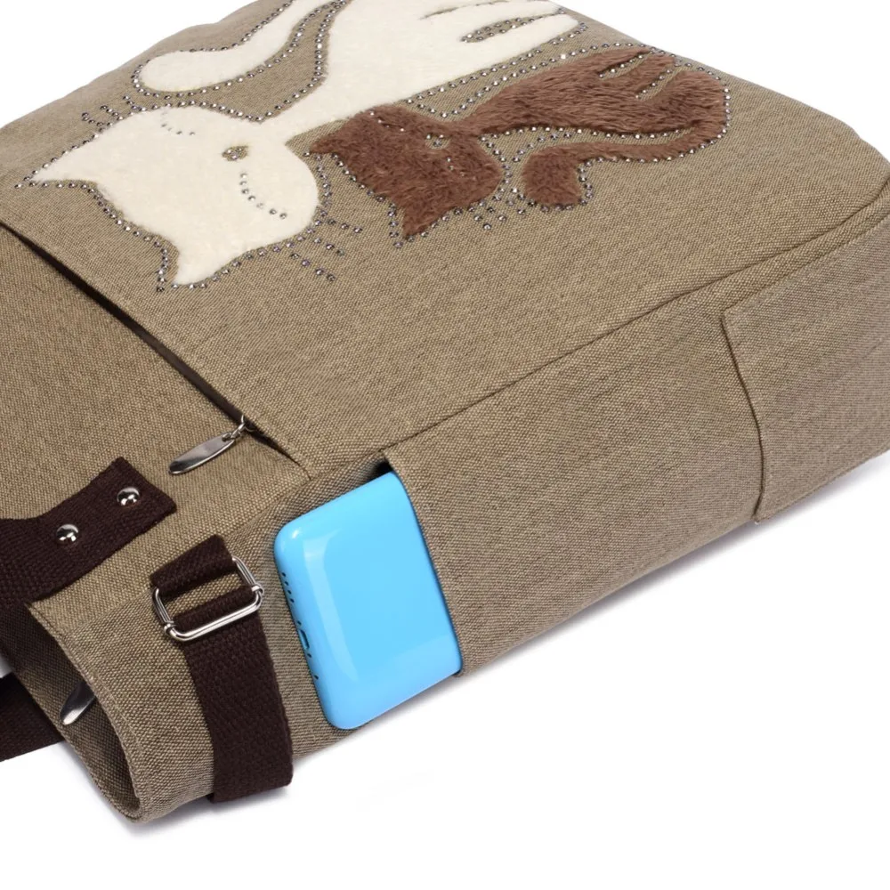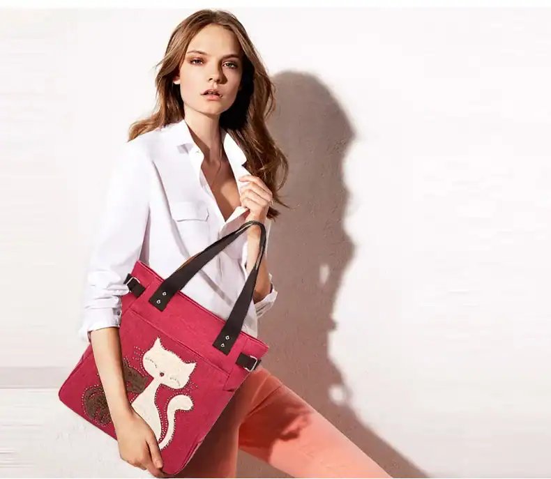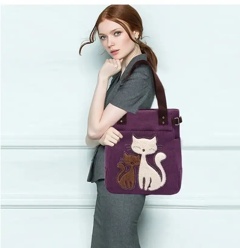 Women’s canvas handbag with cute cat fashion ladies small bags