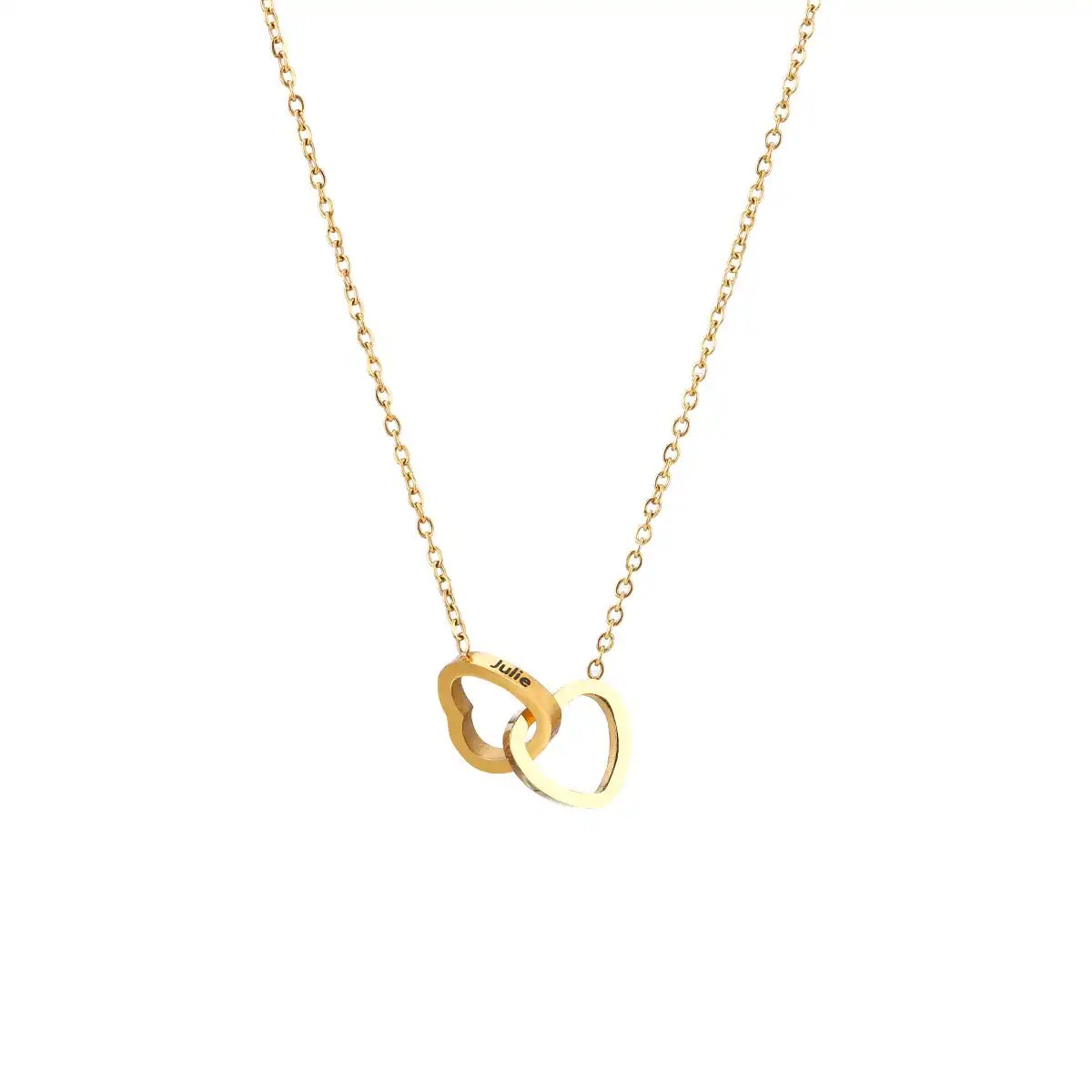 Personalized Necklace: A delicate heart-shaped necklace featuring two intertwined hearts. Customize it with your names or a meaningful word to make it uniquely yours.
