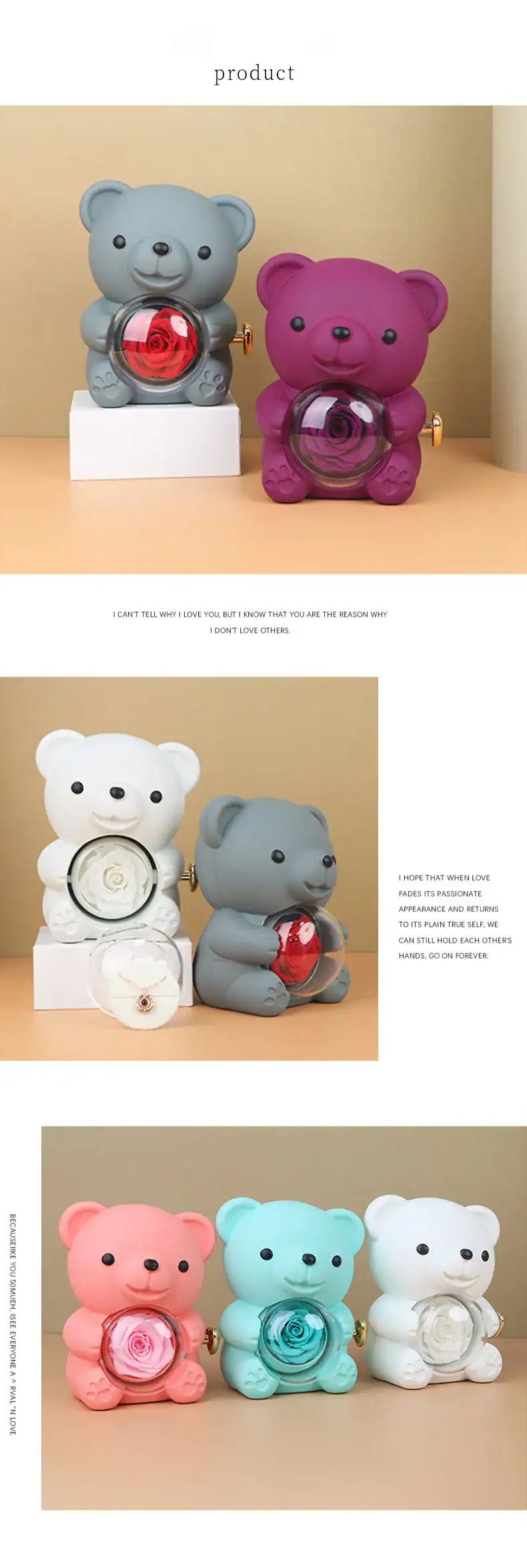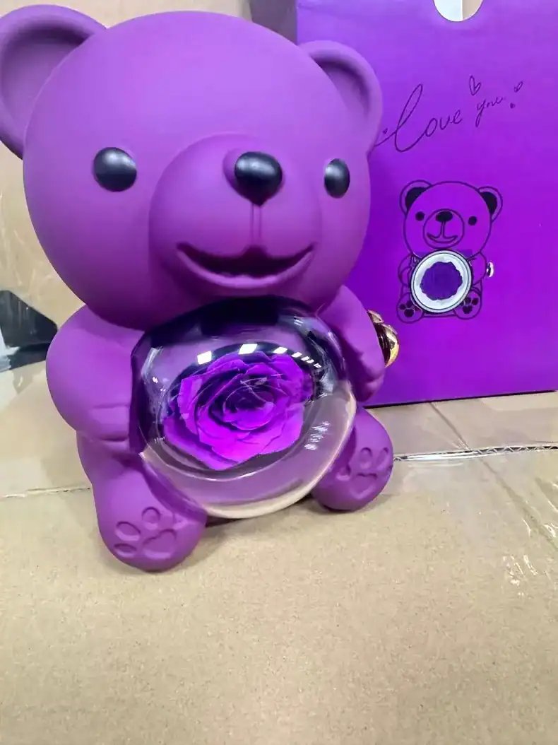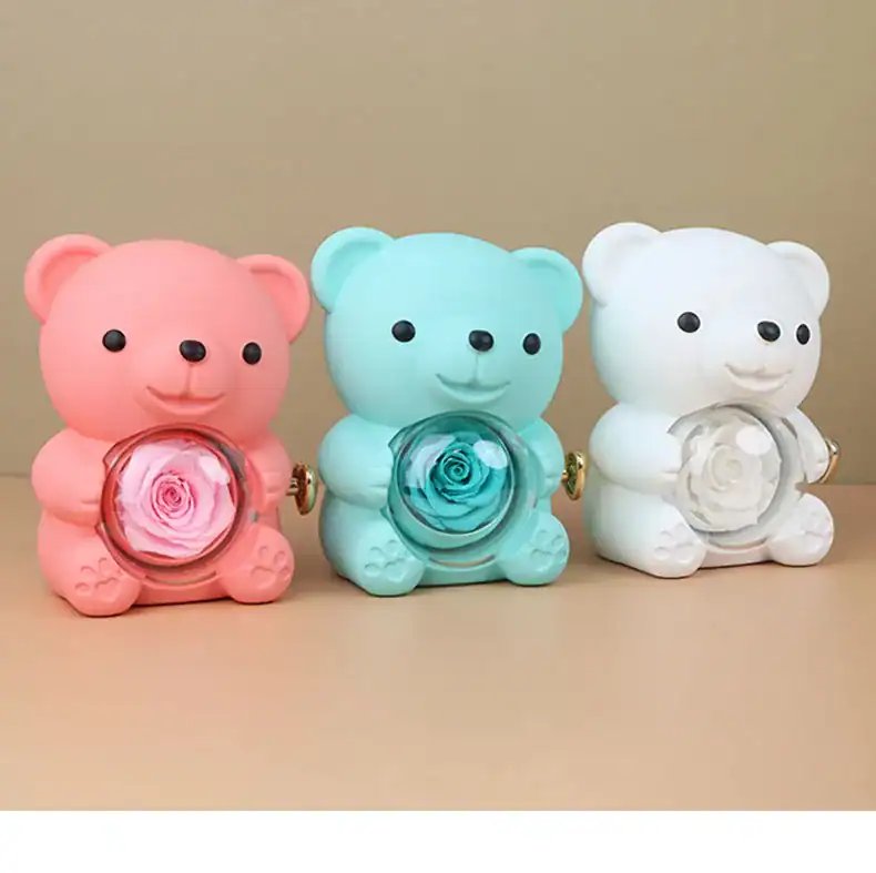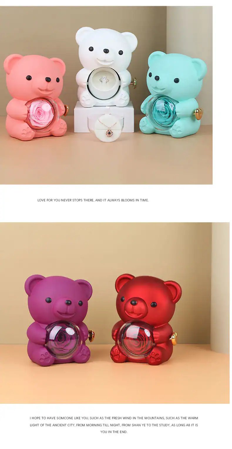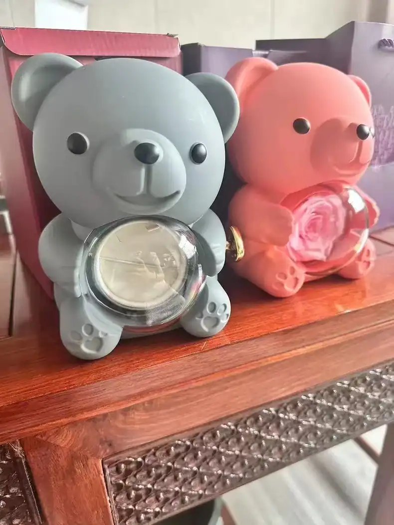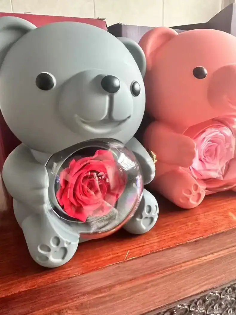 Adorable Bear Design: Choose between a radiant red or soft pink bear, crafted with a smooth, premium finish. Each bear is designed to hold an elegant preserved rose in its center, symbolizing eternal love and beauty.
