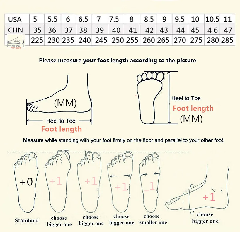 Please measure the length of your feet first, and then choose your size accordingly.
