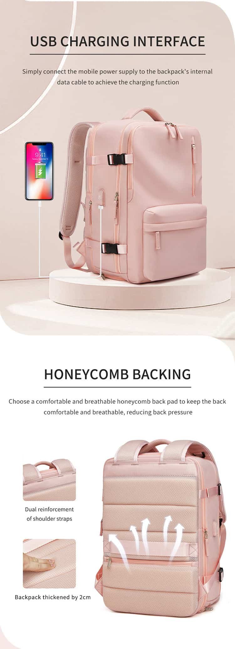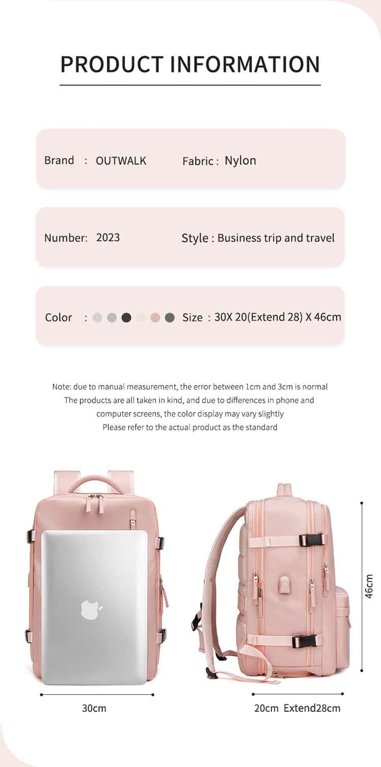 Large Fashion Travel Backpack for women: this backpack is made of durable waterproof nylon, good air permeability and heat dissipation with two padded shoulder straps, offers lightweight carrying and strength reinforcement, relieves shoulder pressure and keeps you cool when used for a long time. And it is hard, solid and does not fade.