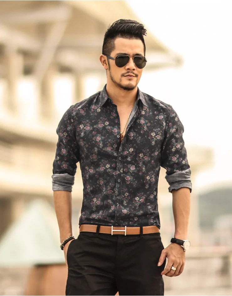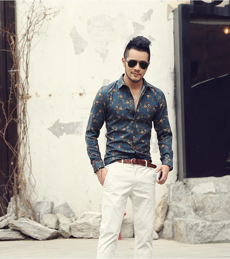 Fashionable Flower Printed Long Sleeve Shirt