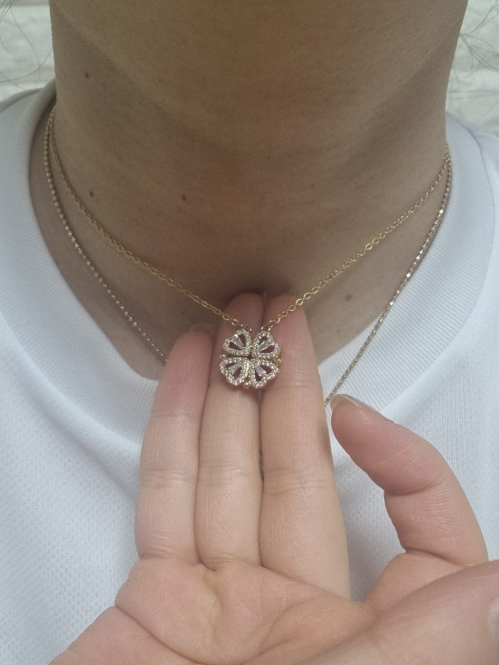 The Four Leaf Clover Necklace is a revolutionary, patented design that allows the clover to open up to reveal 4 hearts. The vibrant design dances with mesmerizing light and twinkles with every breath and beat of your heart; and a brilliant-cut makes it reflect light from every angle and catch people’s eye almost instantly.