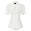 Are you looking for a casual, chic, and Gothic shirt? Introducing to you our Women’s gothic steampunk clothing! This kind of renaissance blouse with short puff sleeves, V neck, button placket, lace-up in the back. Ruffled sleeve cuffs design, match with skirts, jeans, or other daily clothing. This Victorian blouse is suitable for many occasions, including Renaissance festival, victorian theme party, steampunk mechanic cosplay party, party, performance, office, casual, etc. Perfect for women’s daily shirts! Don’t skip it! Buy now!