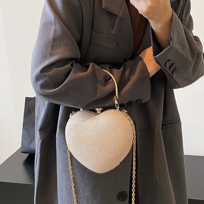 In conclusion, the Heart Shaped Clutch Bag is a beautiful and unique accessory that is perfect for adding a touch of elegance and romance to your outfit. It is made of high-quality materials and is available in various colors. It is perfect for special occasions or as a gift for your loved ones. Order now and add a touch of luxury to your wardrobe!
