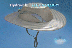 The Hydro Cooling Hat with UV protection! It’s evaporative cooling liner retains cool water and slowly evaporates to keep you 20°F cooler than the outside temperature!