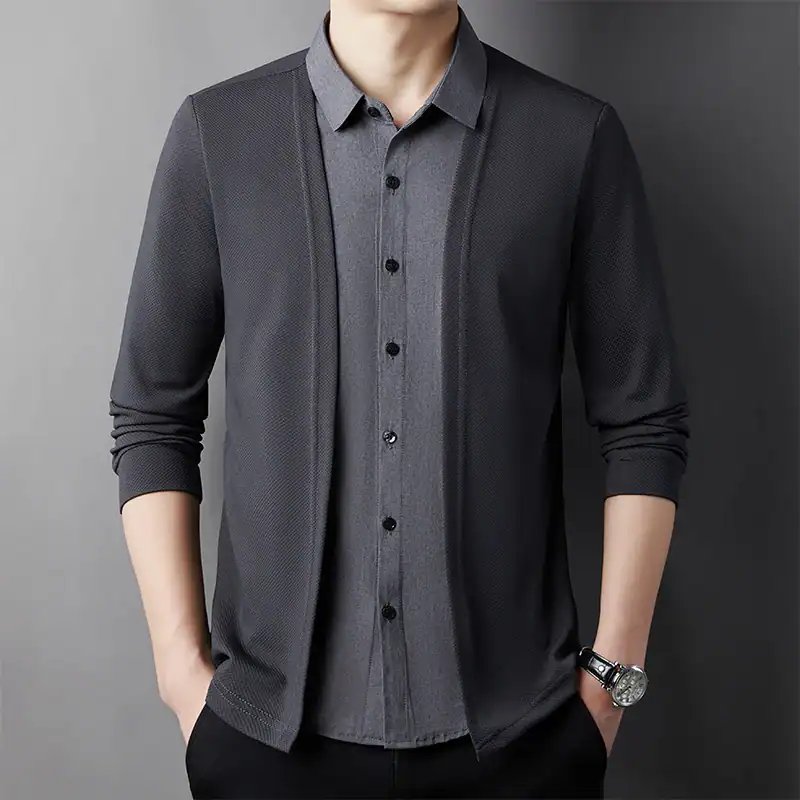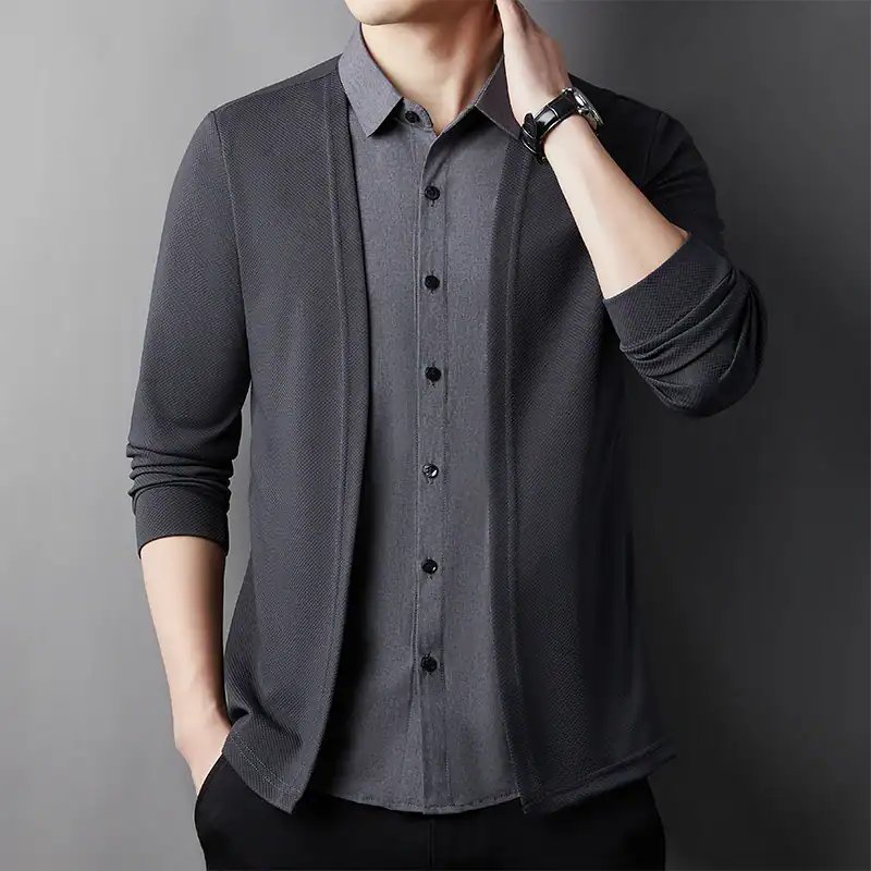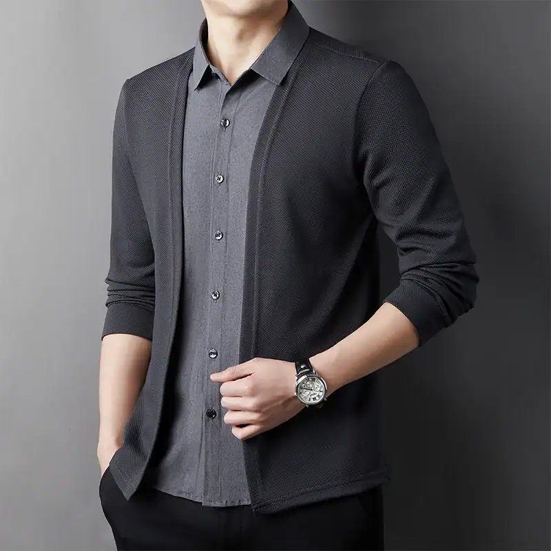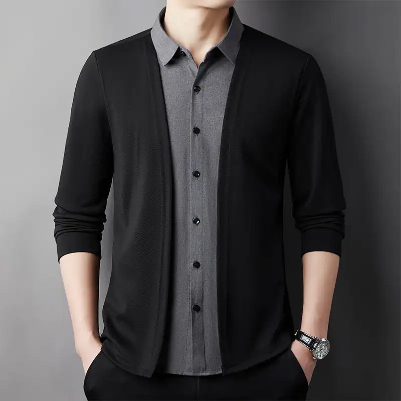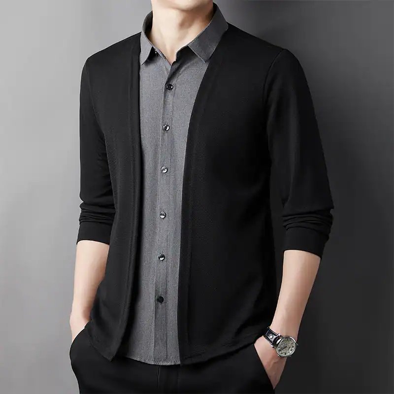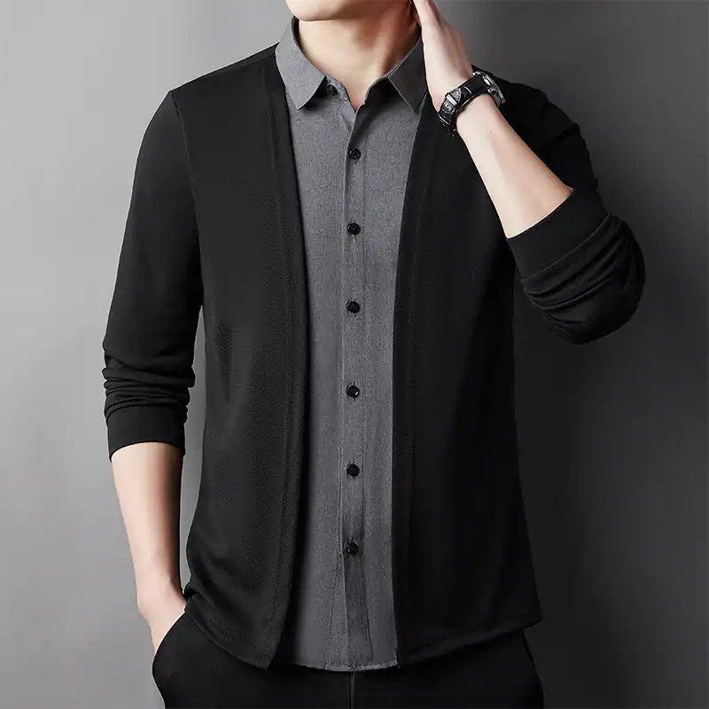 FAKE TWO-PIECE DESIGN: Redefine your look with layering. This shirt collar T-shirt knitted cardigan perfectly combines the elegance of a shirt collar with the comfort of a classic T-shirt, creating a sophisticated yet relaxed aesthetic.