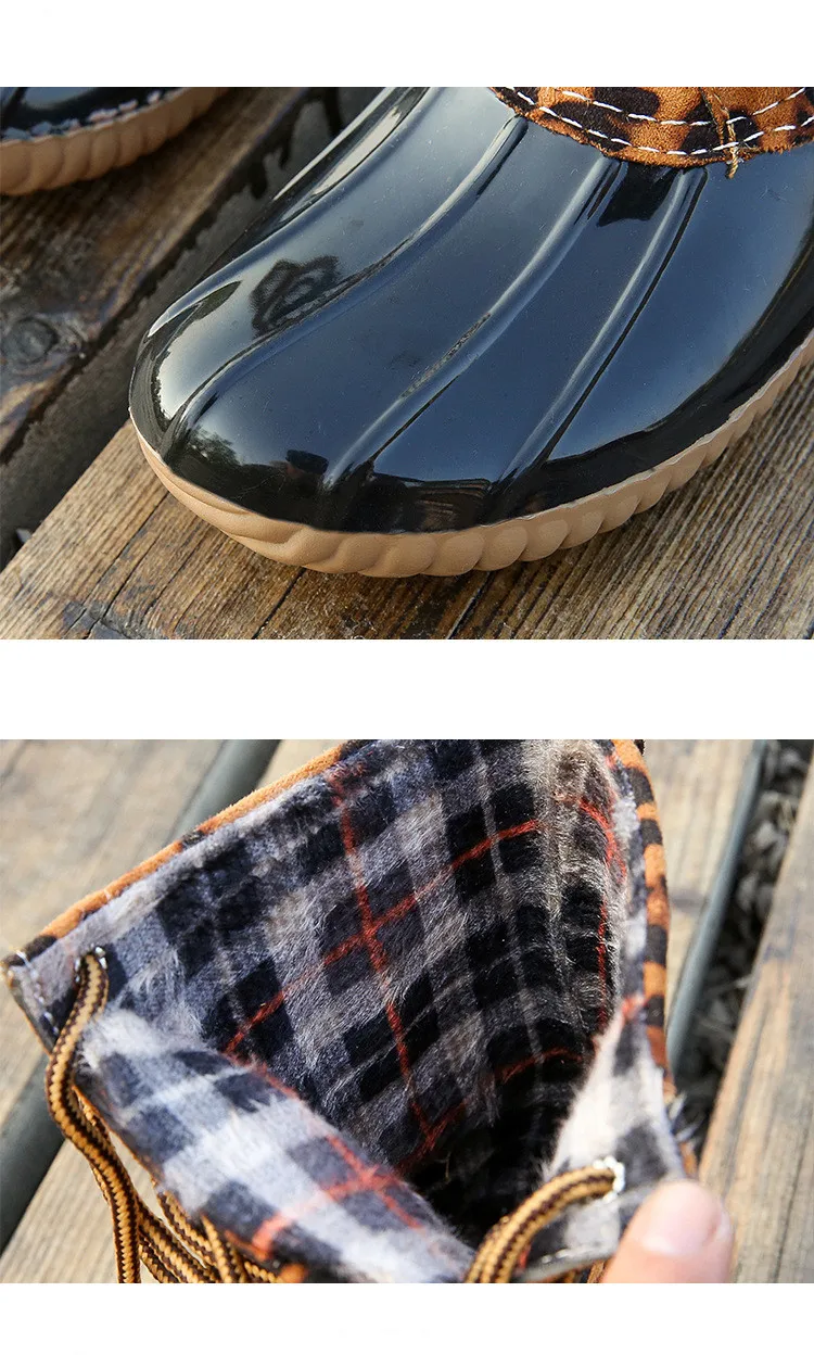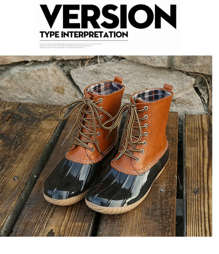 Anti-Slip Outsole: Anti-slip rubber sole-designed as per tyre pattern, with super grip and waterproof performance. new design classic round-toe, which complying human feet construction. Lace Up Duck Boots have a dirt-resistant exterior help us to clean easily.