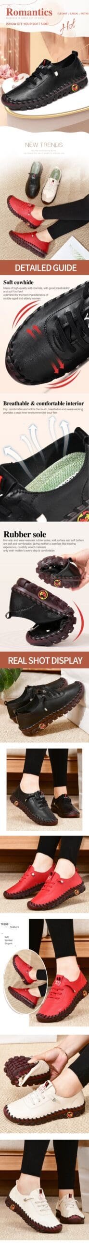 Are you looking for a comfortable shoe for this spring? If yes, don’t skip our Spring ladies casual shoes, they will make you pleased! These shoes are made of high-quality soft leather, with good air permeability, soft foot feeling, and comfortable wearing. Women ’s comfortable shoe shaft measures approximately low-top from the arch. Wear-resisting rubber sole with the function of skid resistance, soft and comfortable. Make you lighter when walking, and keep your feet comfortable when you’re headed out. These casual shoes are great with jeans, shorts, dressy, trousers, wide-leg trousers, and any fit of trousers, they are very versatile. Get it now!