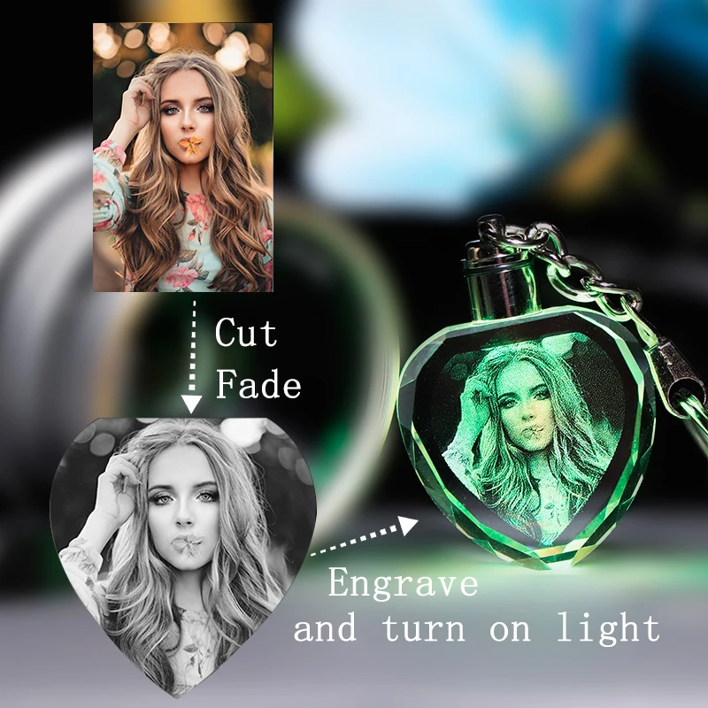 Laser Engraved Crystal Glass KeyChain