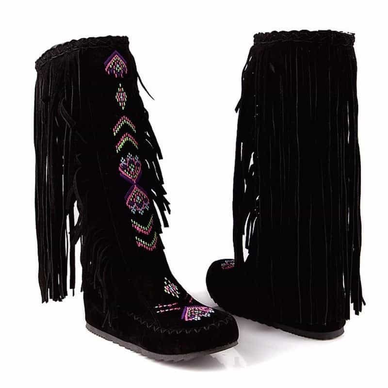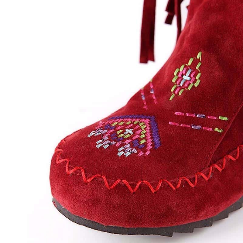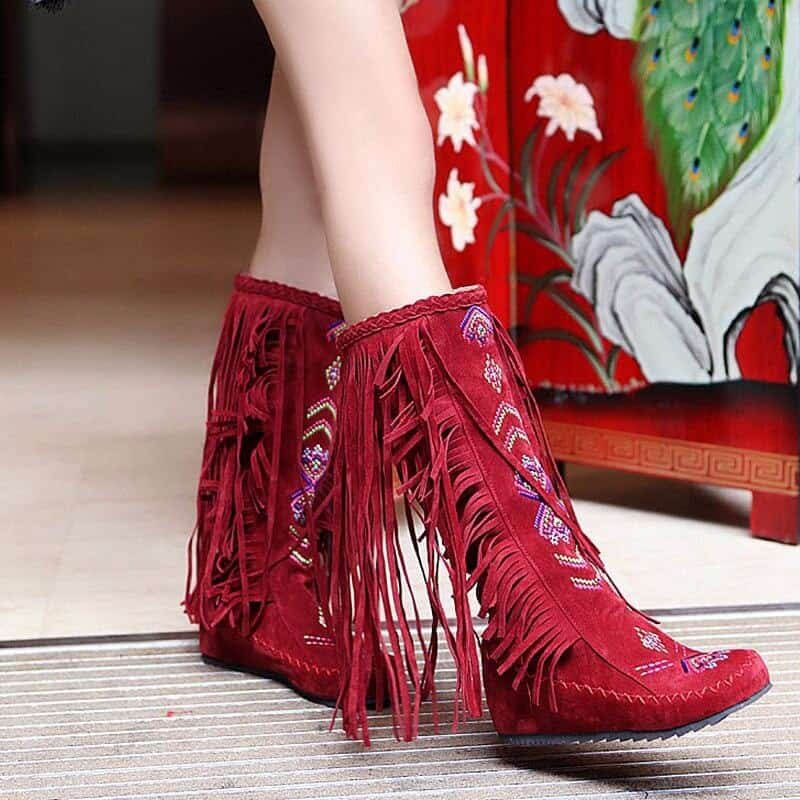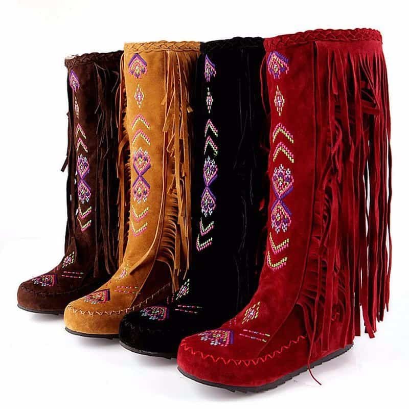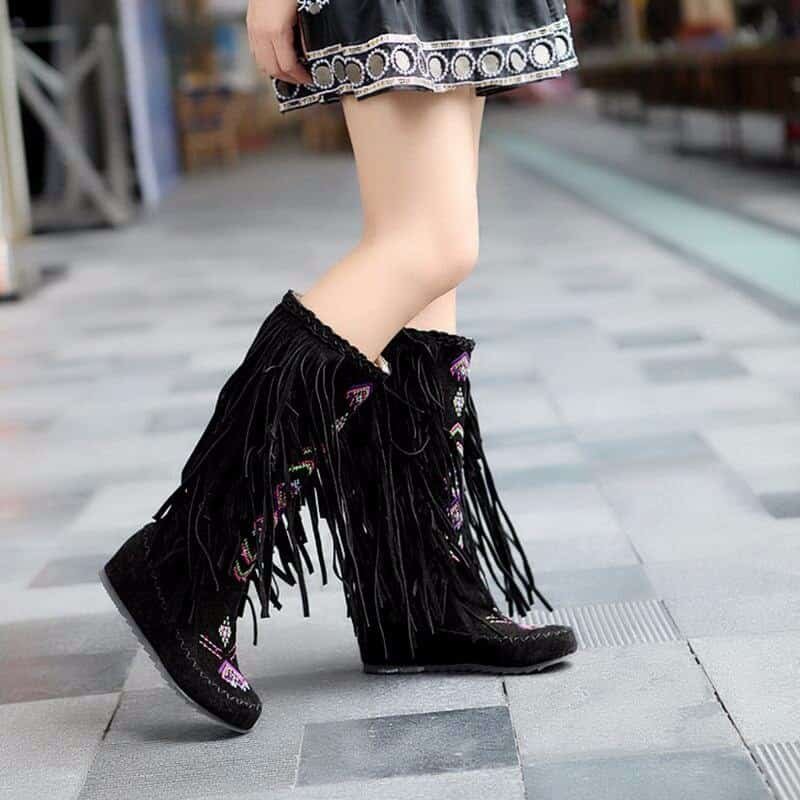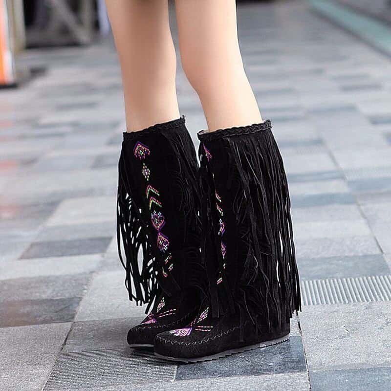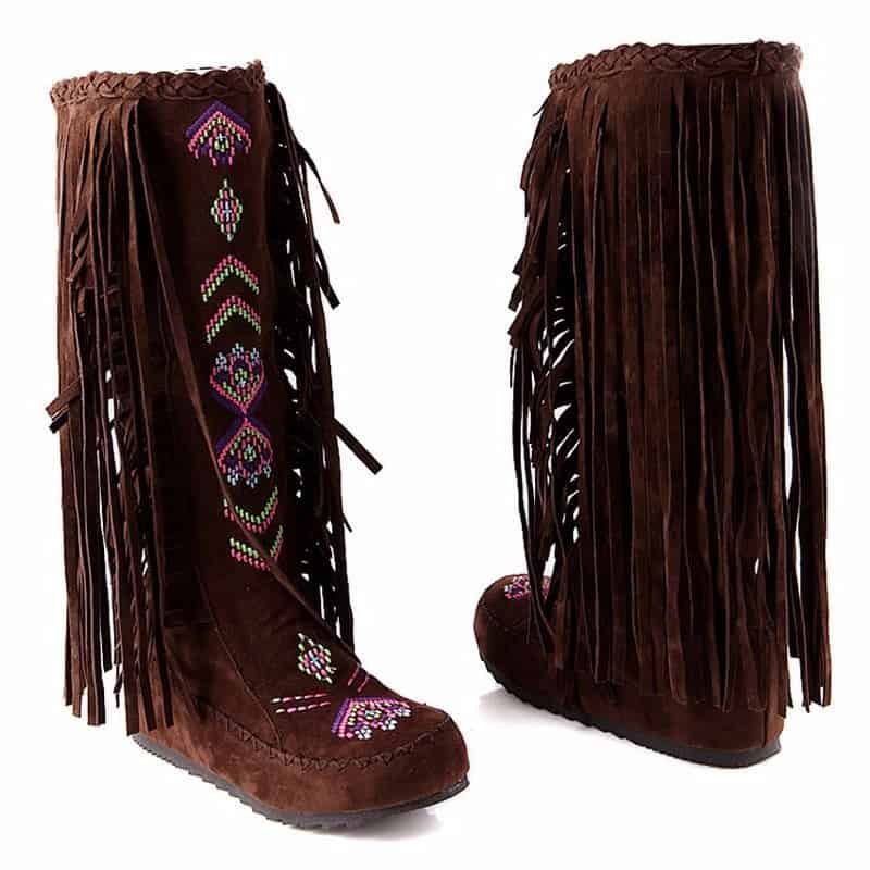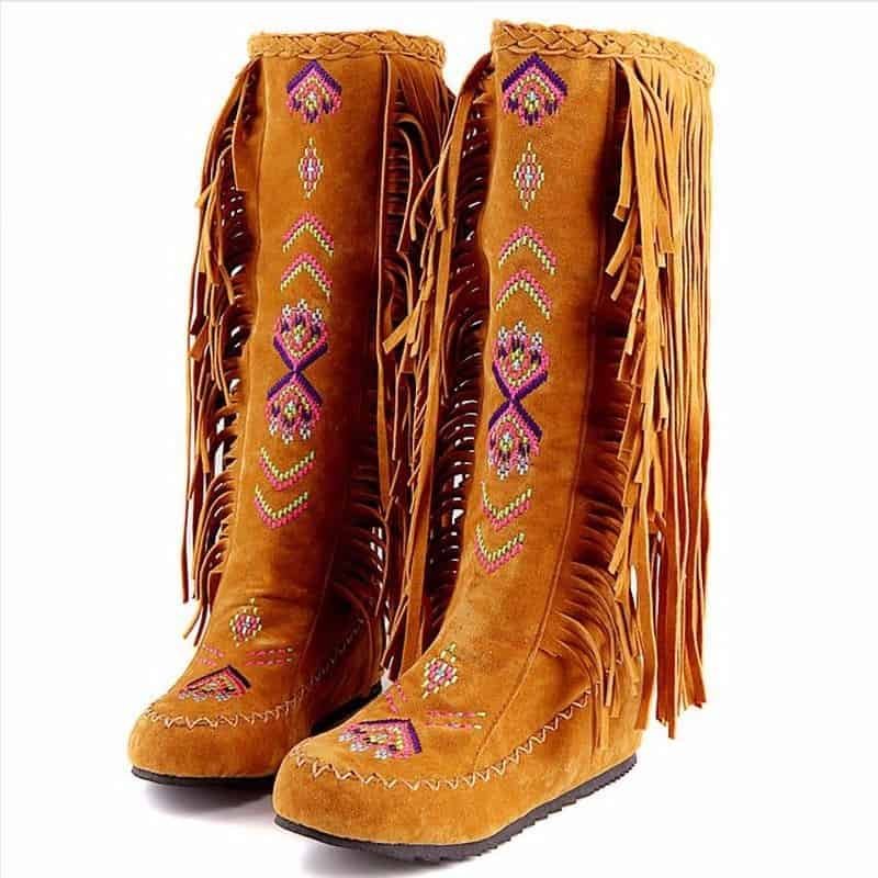 If you’re looking for a pair of boots with some personality but still show a feminine, this Light brown tassel flat boots for you. These Light brown tassel flat boots are specially designed with tassel decor and embroidery detail. Make sure to add these to your wardrobe and become a surprising and significant fashion trend.