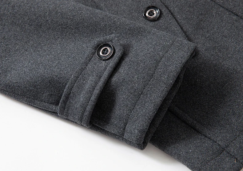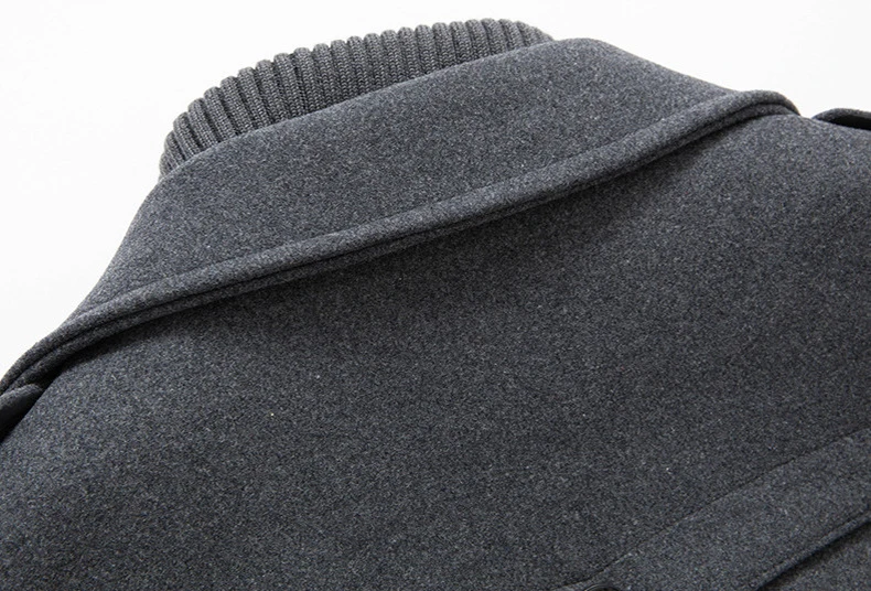 The men double collar coat is made of 40% wool and 60% polyester fiber fabrics, soft, smooth and breathable. No odor, not easy to pilling. Make the winter no longer cold!