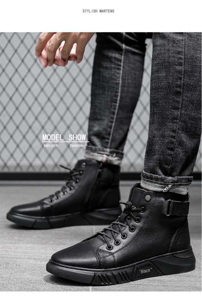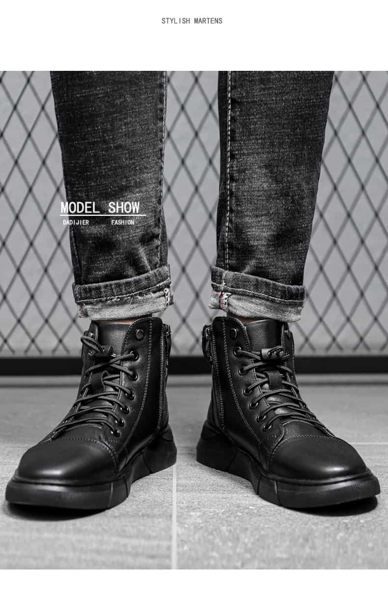 Are you looking for boots? Let’s try our black men leather boots, it will make you stand out on the street! They are made of comfortable and breathable material, matched with the soft elastic insole, compressive and shock-absorbing. The upper material is soft, the texture is delicate, and there is no crease when worn for a long time, giving you a comfortable walking experience. This upper leather provides a beautiful finish that only gets better with age. Stacked leather heel with rubber base. Rubber sole, light texture, no foot feeling, string pressure educational three-dimensional pattern enhance the grip of the shoe. Get it now!