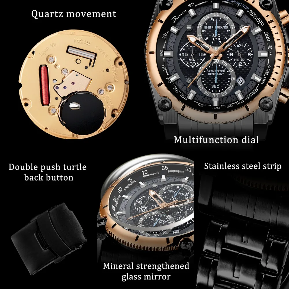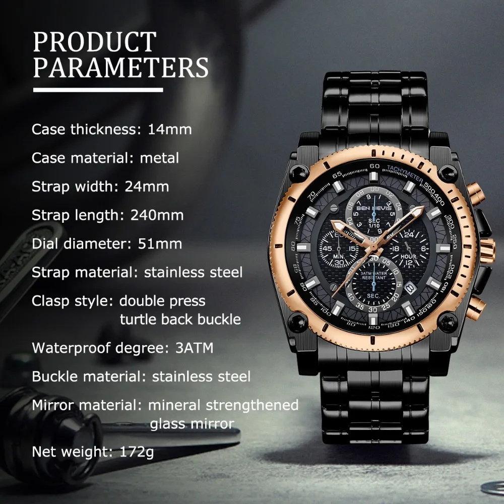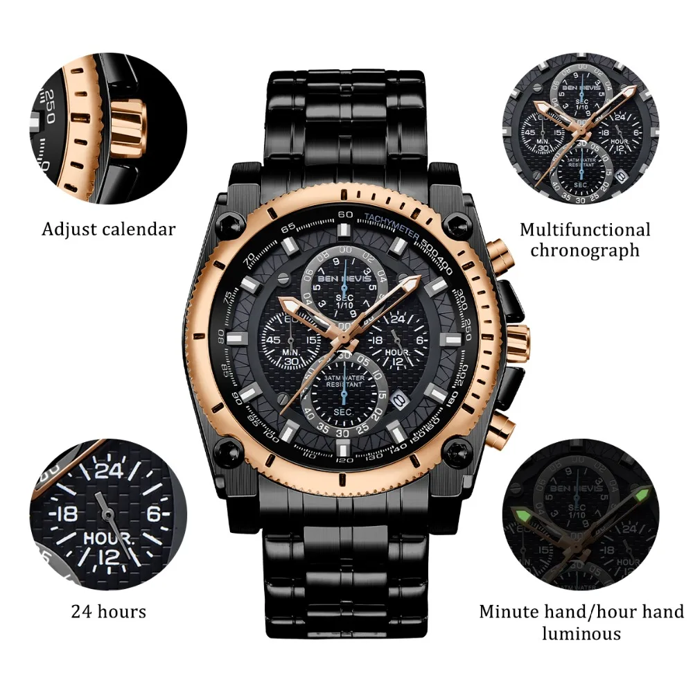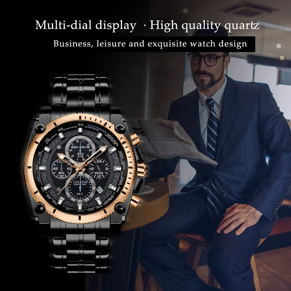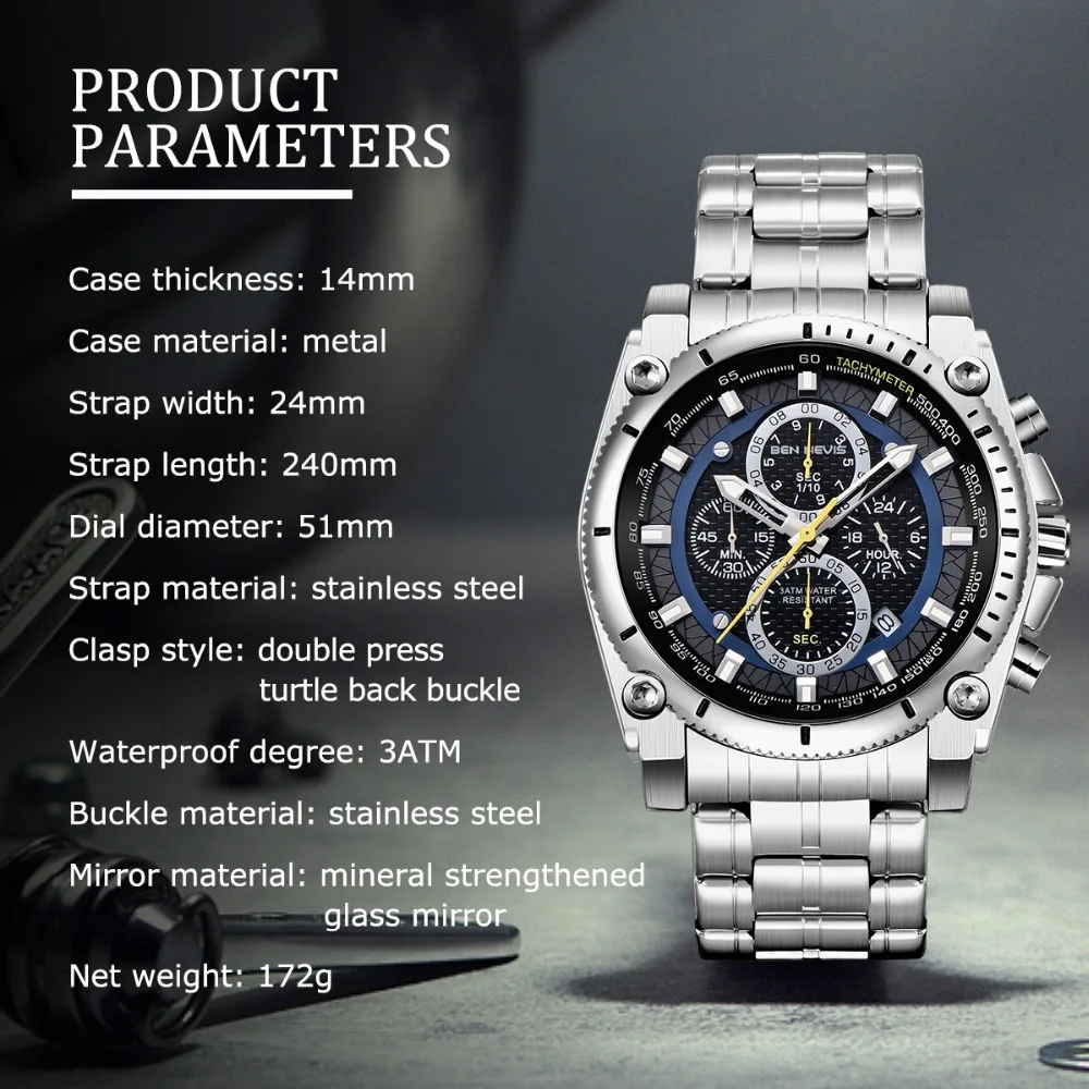 Accessories are important items that create a man’s elegance and prominence, especially the watch. This Men’s stainless steel watch will make a great gift for you. It’s made of stainless steel with curved crystal, a material that is safe for the skin and is durable over time. The unique watch dial is decorated with four exquisite dials and seven needles, also Japanese quartz is glazed on the dial, which is the best to build elegant taste just for you, and reflect your inner. Moreover, with a water resistance of up to 900 feet, you can comfortably wear it for swimming or diving at moderate depths. Make yourself a gentleman with this watch. Buy it now!