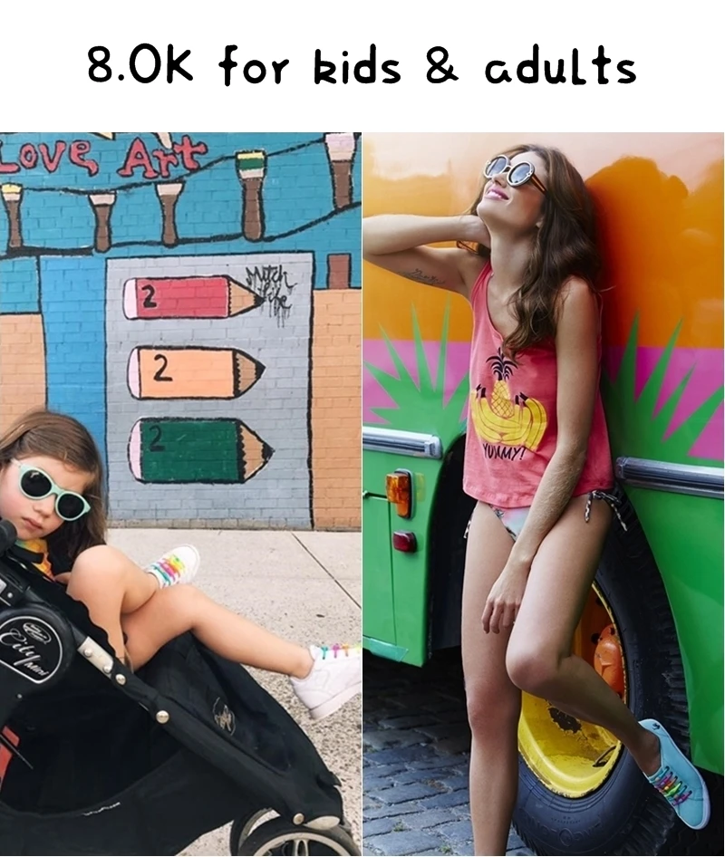 – For use with any footwear that has eyelets and fits any size shoe between both narrow and wide sizes