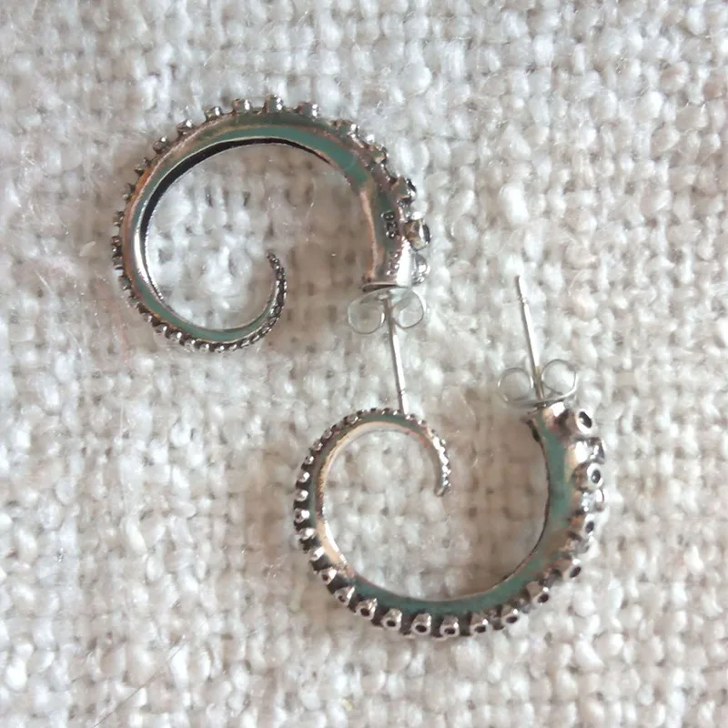 Born on the ocean floor and lives alone in the deepest water, the octopus is a beautiful, magnificent animal. Pirates and sailors would consider the octopus a mascot to protect them from the evils at sea. Many people believe the octopus was a good luck charm. That’s why you should buy our Octopus earrings. The product is made of vintage silver with a form of octopus leg that goes around your ears. It is very durable, lightweight, and comfortable to wear. These earrings look great on both men and women. Keep these super unique earrings close for some adventures in your life. Shopping now!