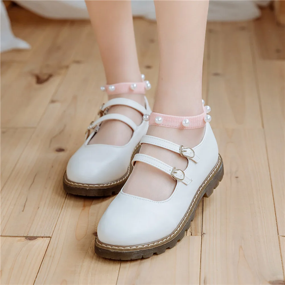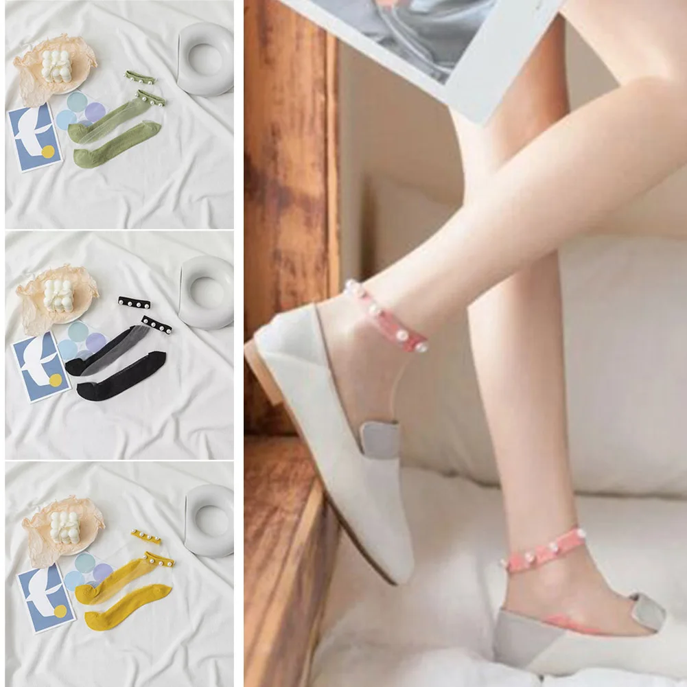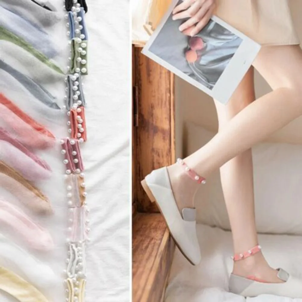 Are you looking for a thin pair of socks to wear in the summer but still want it to have an accent pattern? Let’s use our transparent pearl sock. The product is made of acetate fiber and cotton at the bottom of the socks, the neck of the socks helps the socks last longer. The transparent mesh material helps each pair of socks are breathable and sweat absorbing, non-slip, comfortable, keeping feet dry. The decorated with imitation pearls design, these pretty tulle socks make your feet look very elegant and eye-catching. It’s can be fit well with dress, skirt, or shorts, and so on, perfectly match most shoe styles. Get it now!